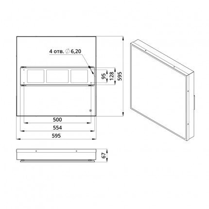 Опция. Офис 595х595х50мм. Накладное крепление для IP54 и IP65