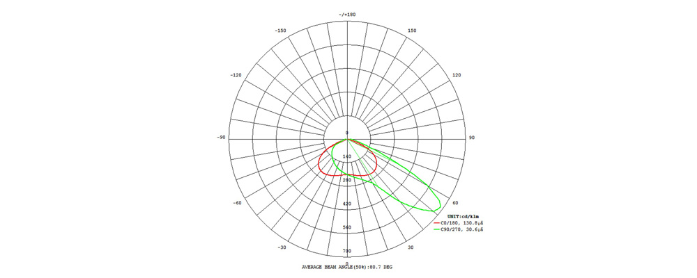 Челябинская светотехническая лаборатория «Светолаб» провела полноценные испытания светильника ПромЛед Плазма v2.0-500 с линзами кососвет 130х30. Измеренная кривая силы света полностью идентична заявленной.