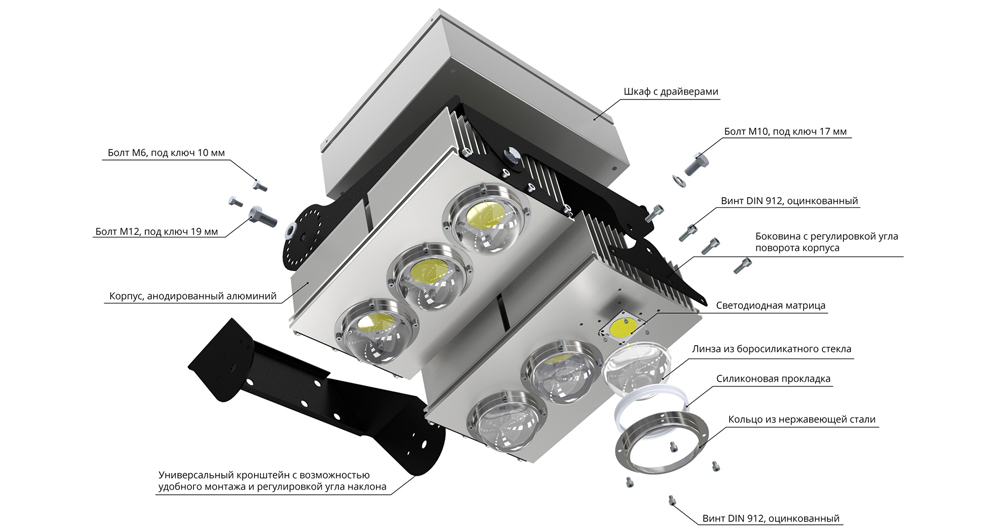 Основное отличие новых светильников от предшественников серий v2.0 – это новый высокотехнологичный корпус из анодированного алюминия. Он спроектирован с непревзойдённым соотношением площади теплоотвода к габаритным размерам светильника, что позволяет производить осветительные приборы высокой мощности при компактных размерах.