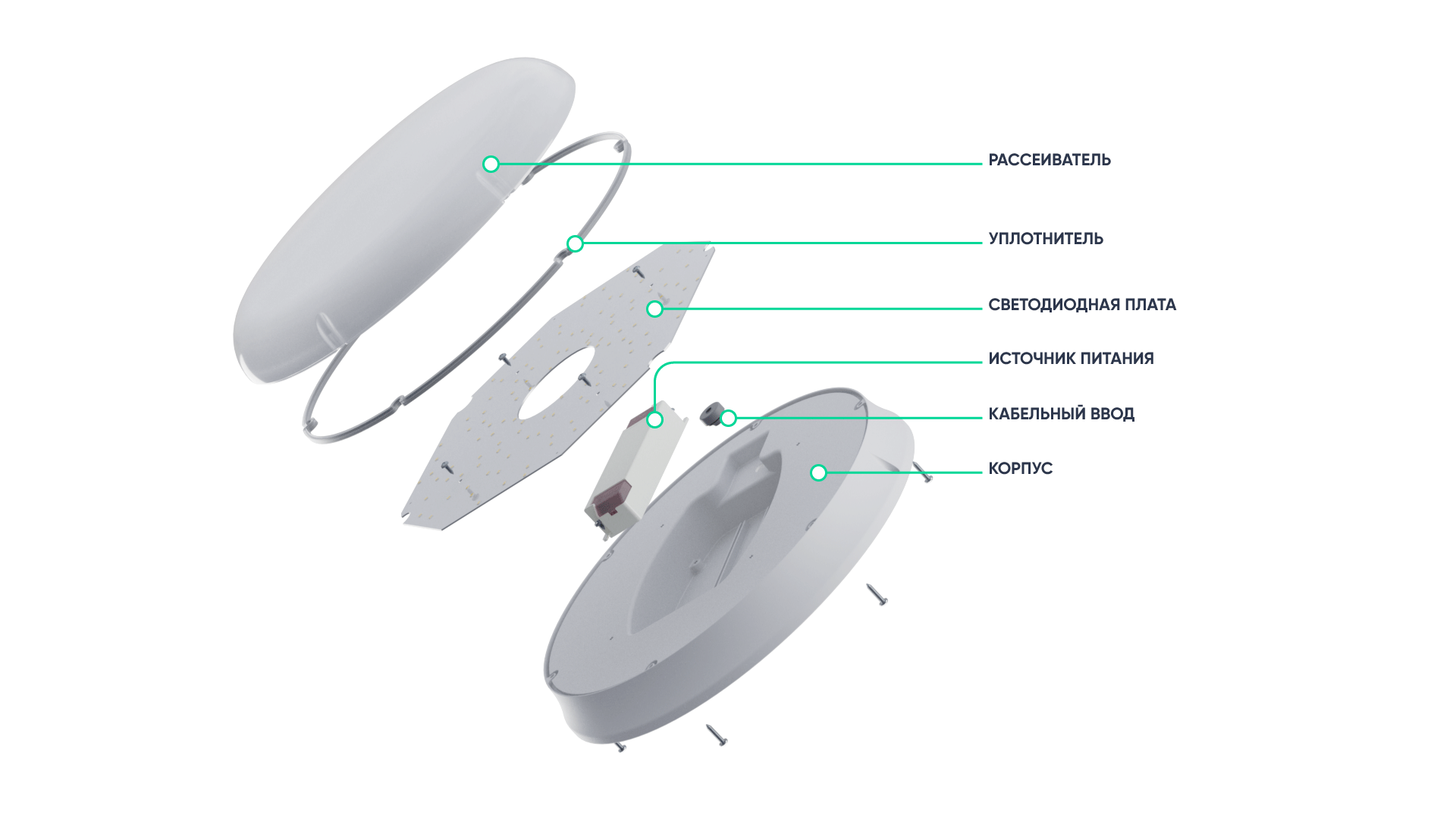 Опаловый рассеиватель изготовлен из оптического УФ-стабилизированного поликарбоната.