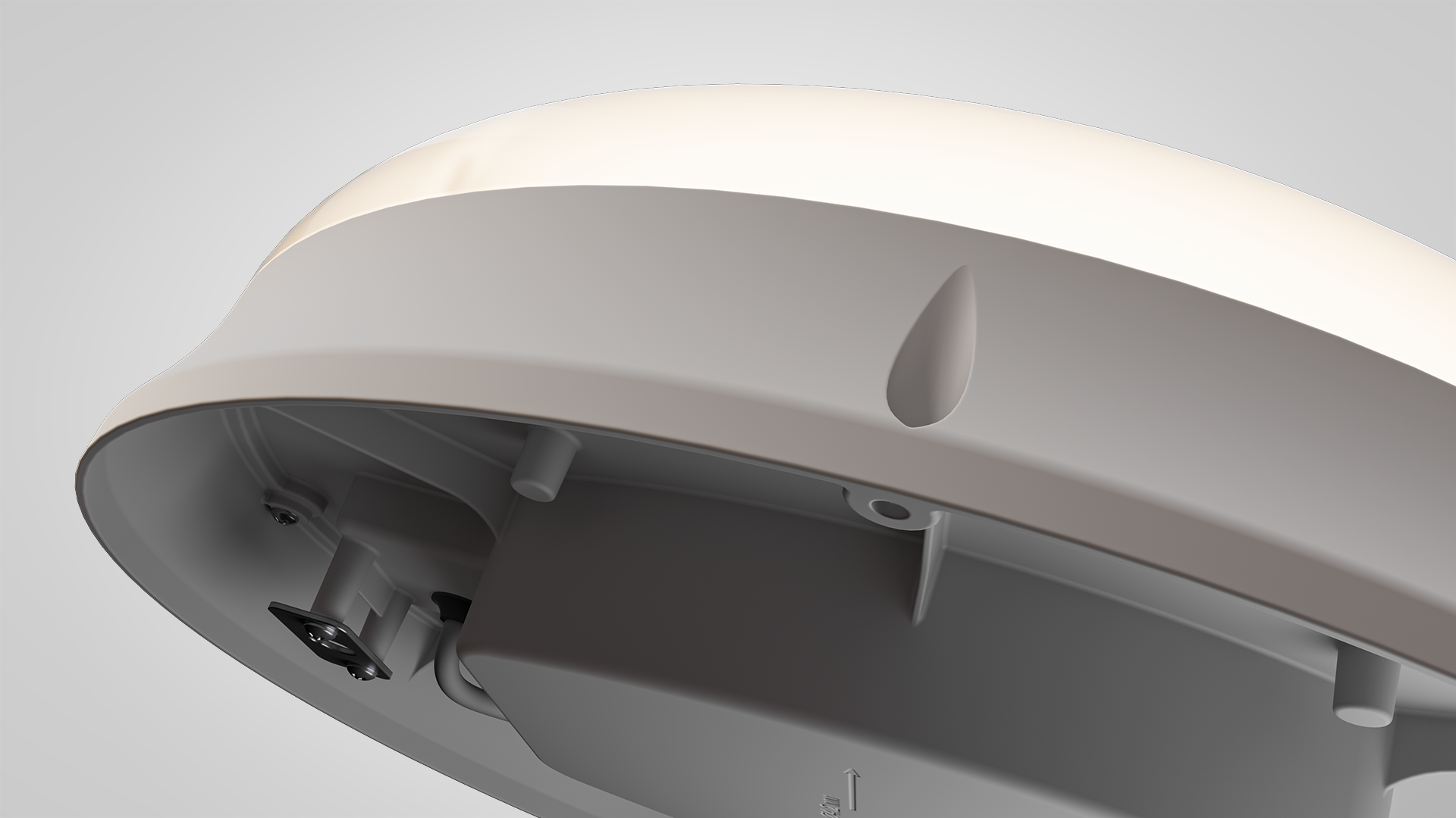 Базовый тип крепления — накладной. Светильник крепится с помощью двух самонарезающих винтов.