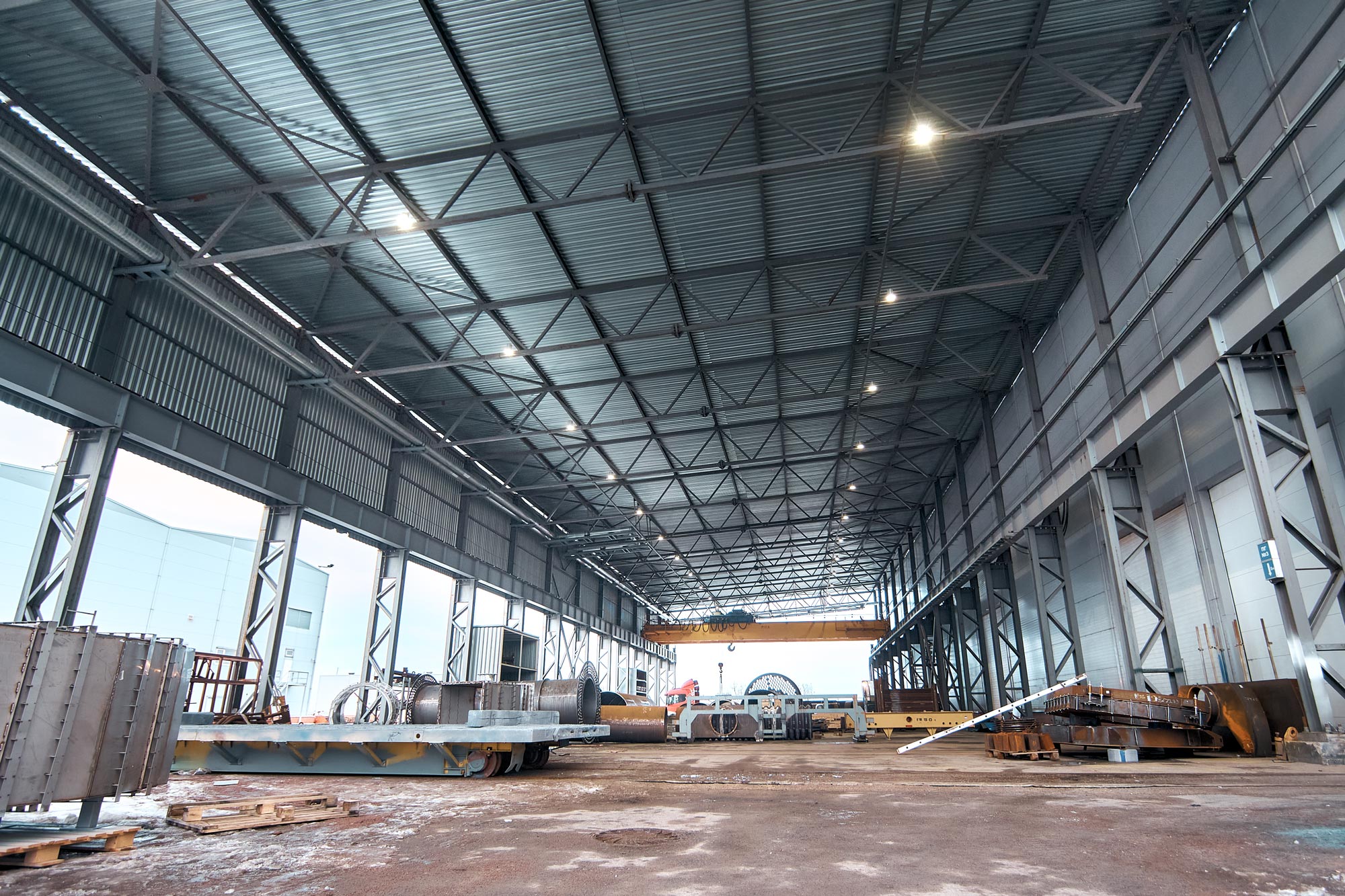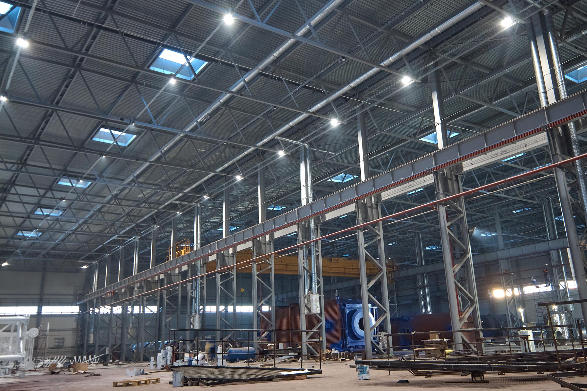 для освещения сварочного цеха установлены светильники серии «Профи Флэт» с увеличенным индексом цветопередачи CRI80, а также модификации с блоком аварийного питания.