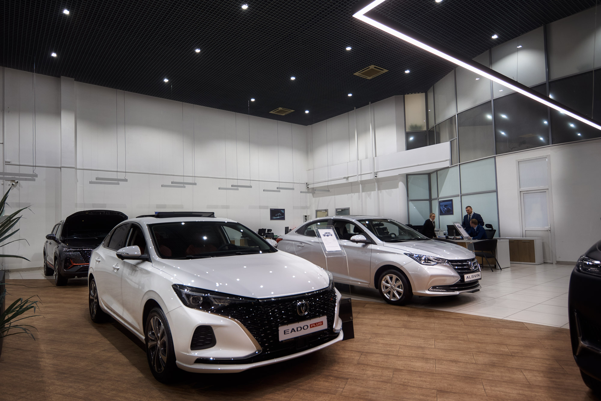 предложить дизайнерское решение освещения автосалона с учетом особенностей помещения и пожеланий заказчика.
