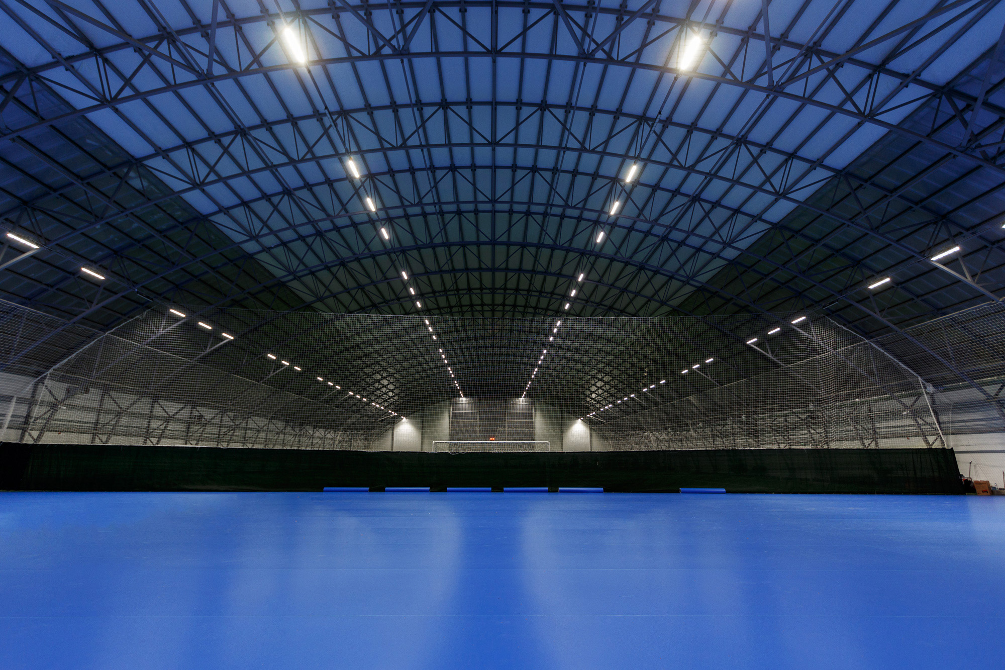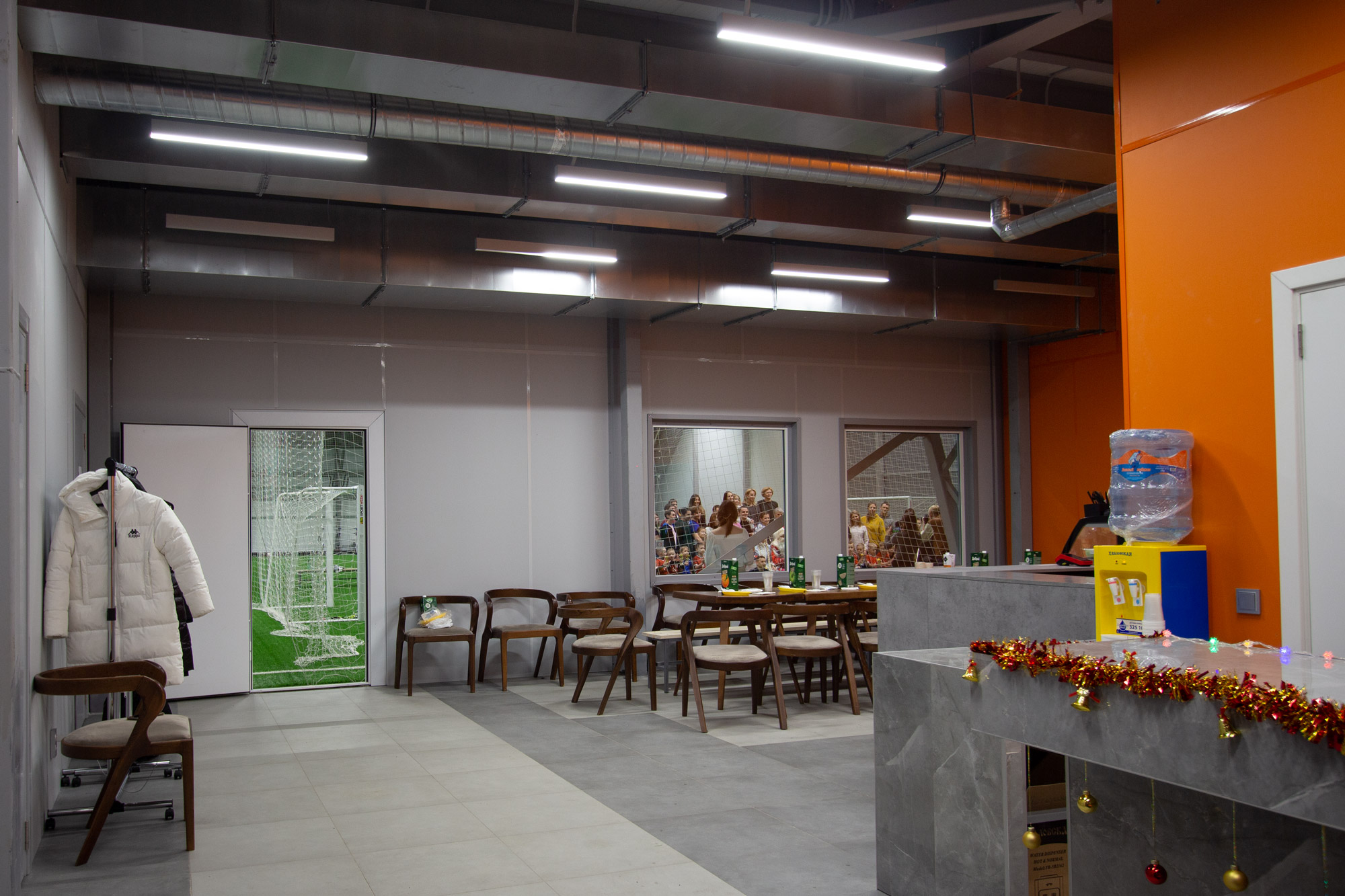 для освещения спортивной арены был разработан линейный светильник на базе «Прожектора S» с оптикой 90° и высоким индексом цветопередачи CRI80. В зоне кафе установлены дизайнерские светильники серии «Элегант S».