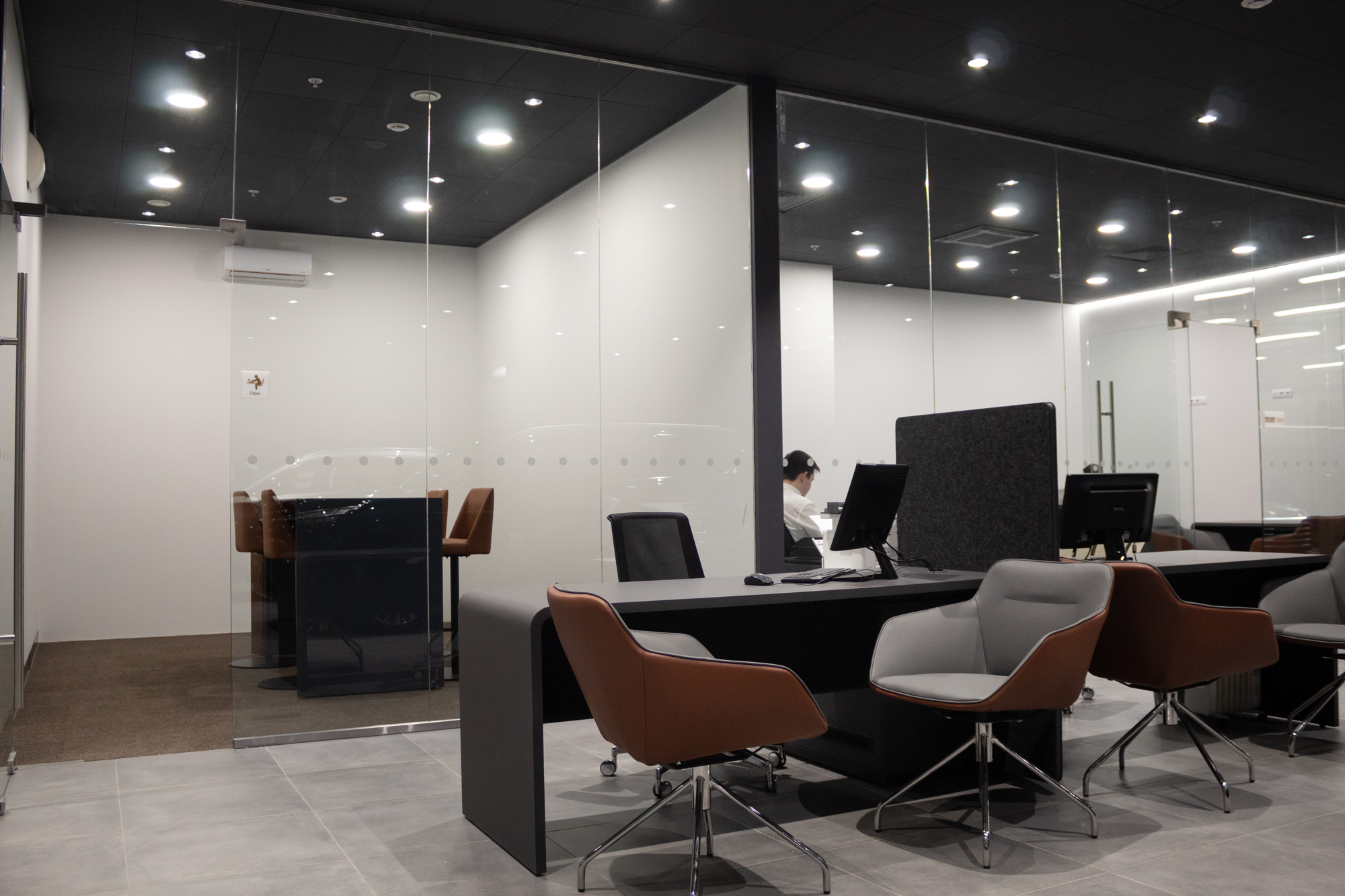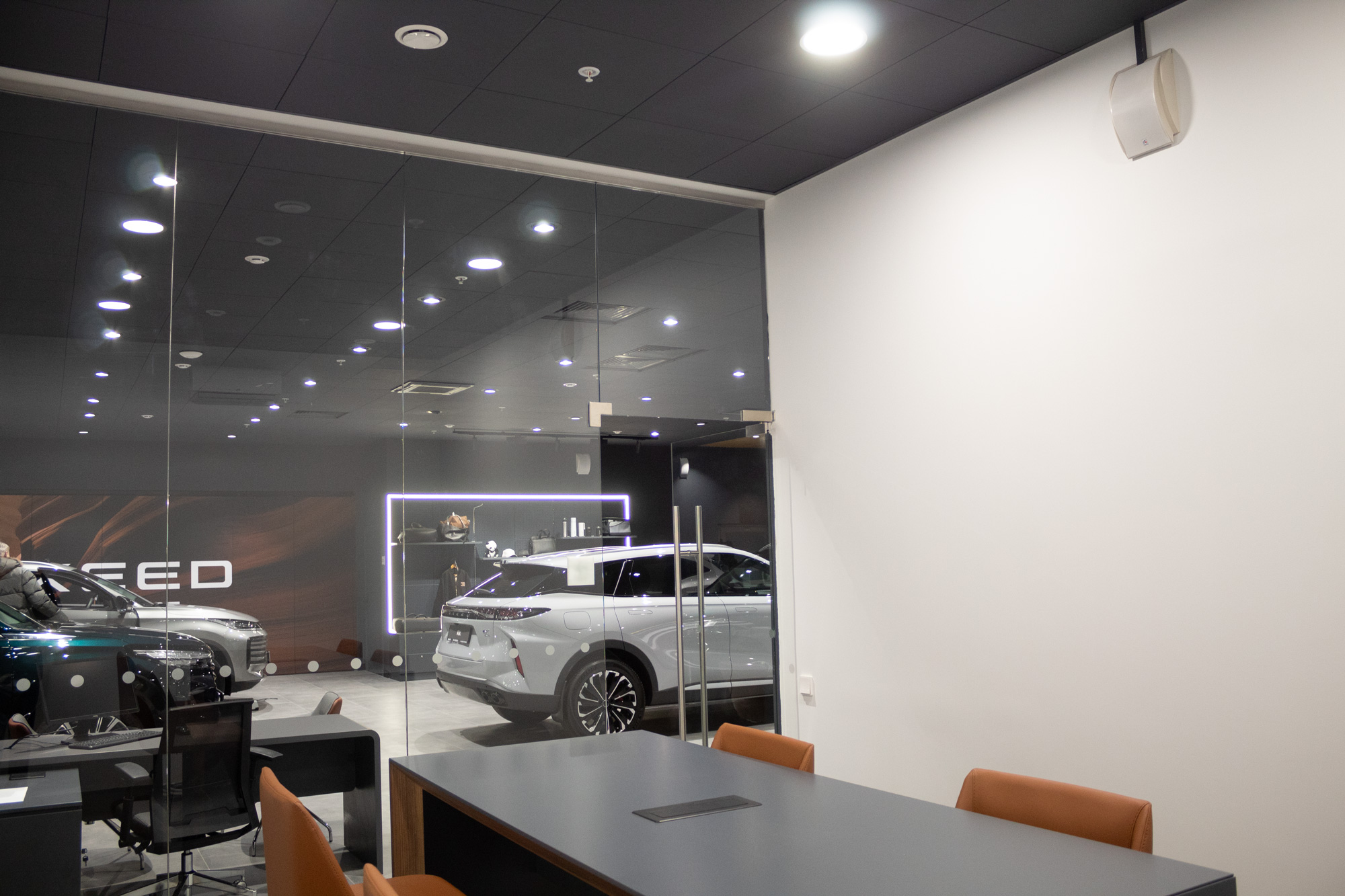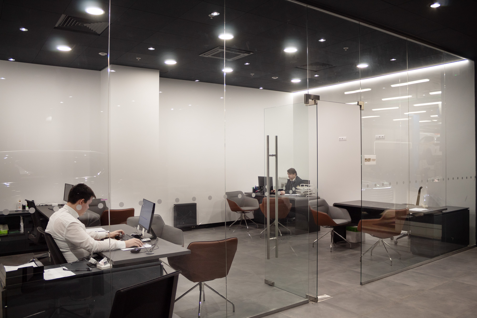 осветить офис продаж и переговорную комнату.