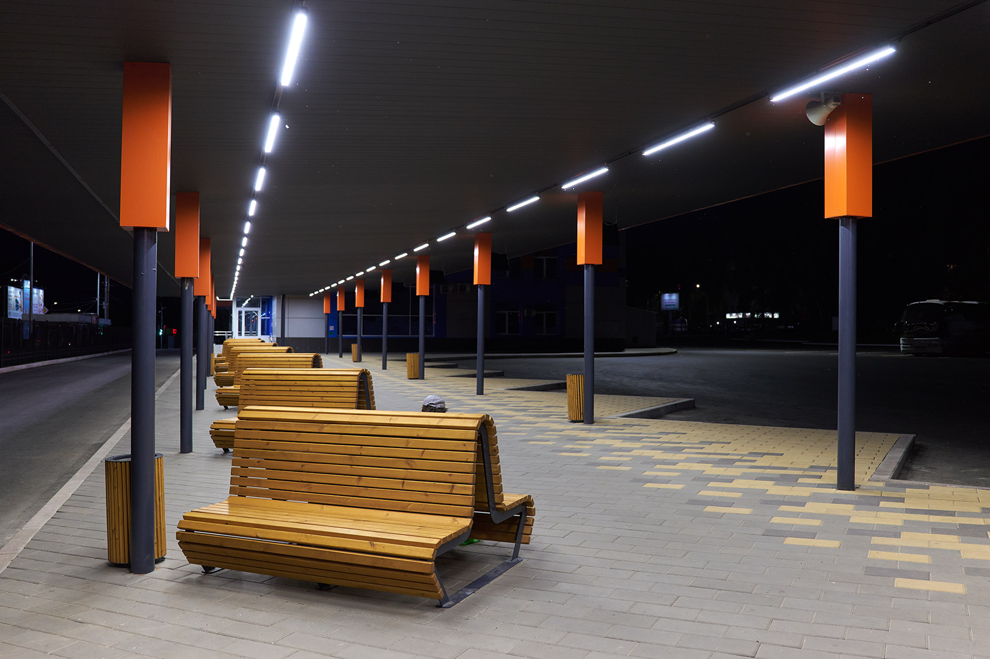 осветить модернизированную остановку общественного транспорта.