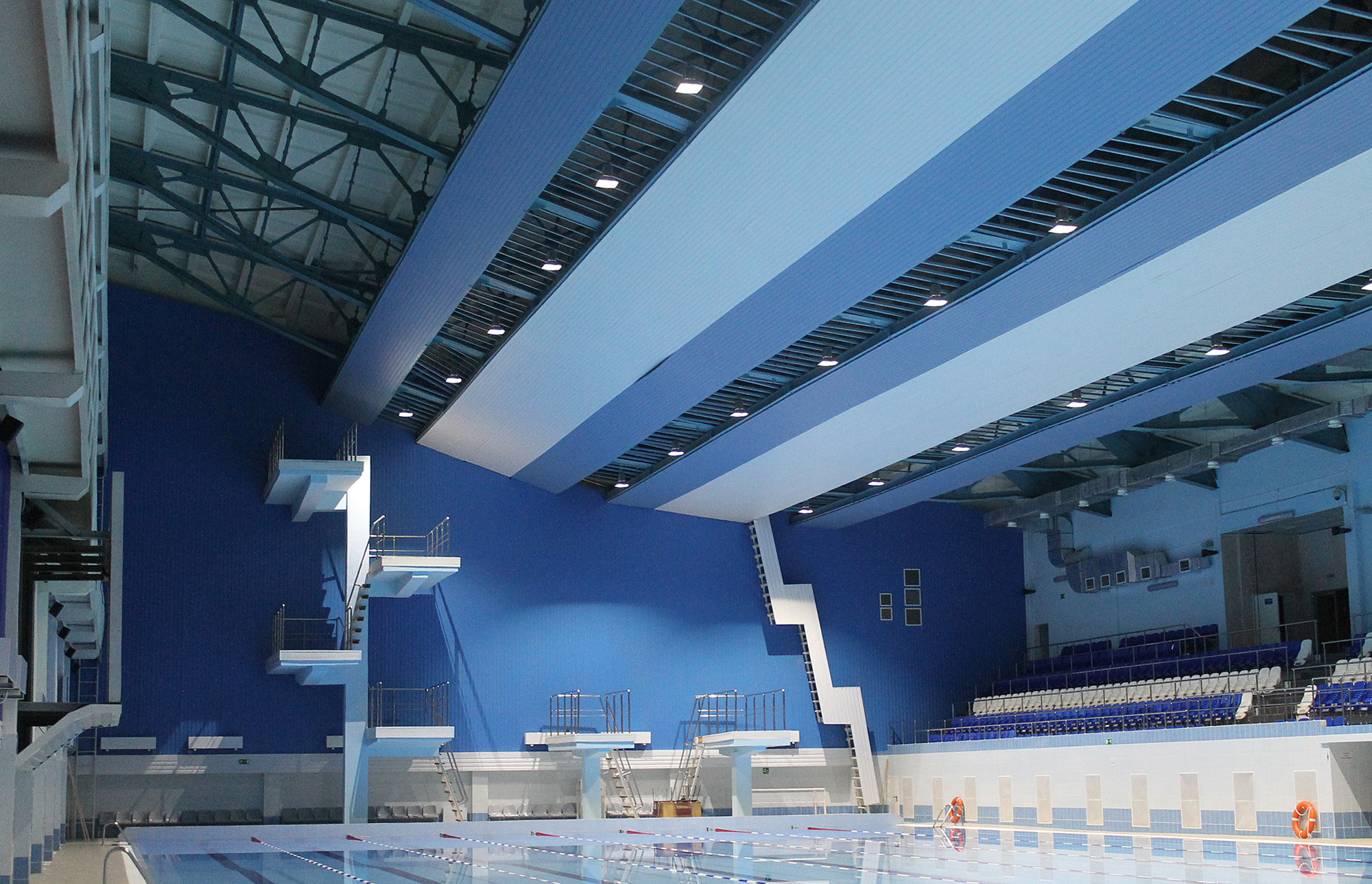 Из расчета было видно, что освещением Профи v2.0-100 была достигнута средняя освещенность в 200 люкс. Это наиболее благоприятная освещенность для человека.К началу учебного 2016-го года светильники смонтированы и радуют посетителей бассейна «Нептун».