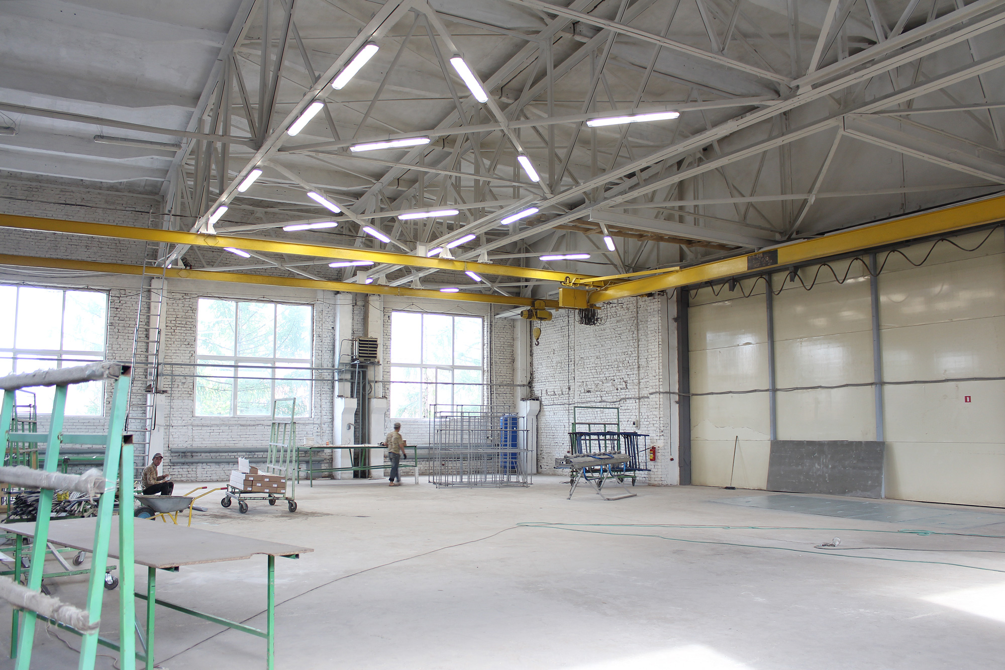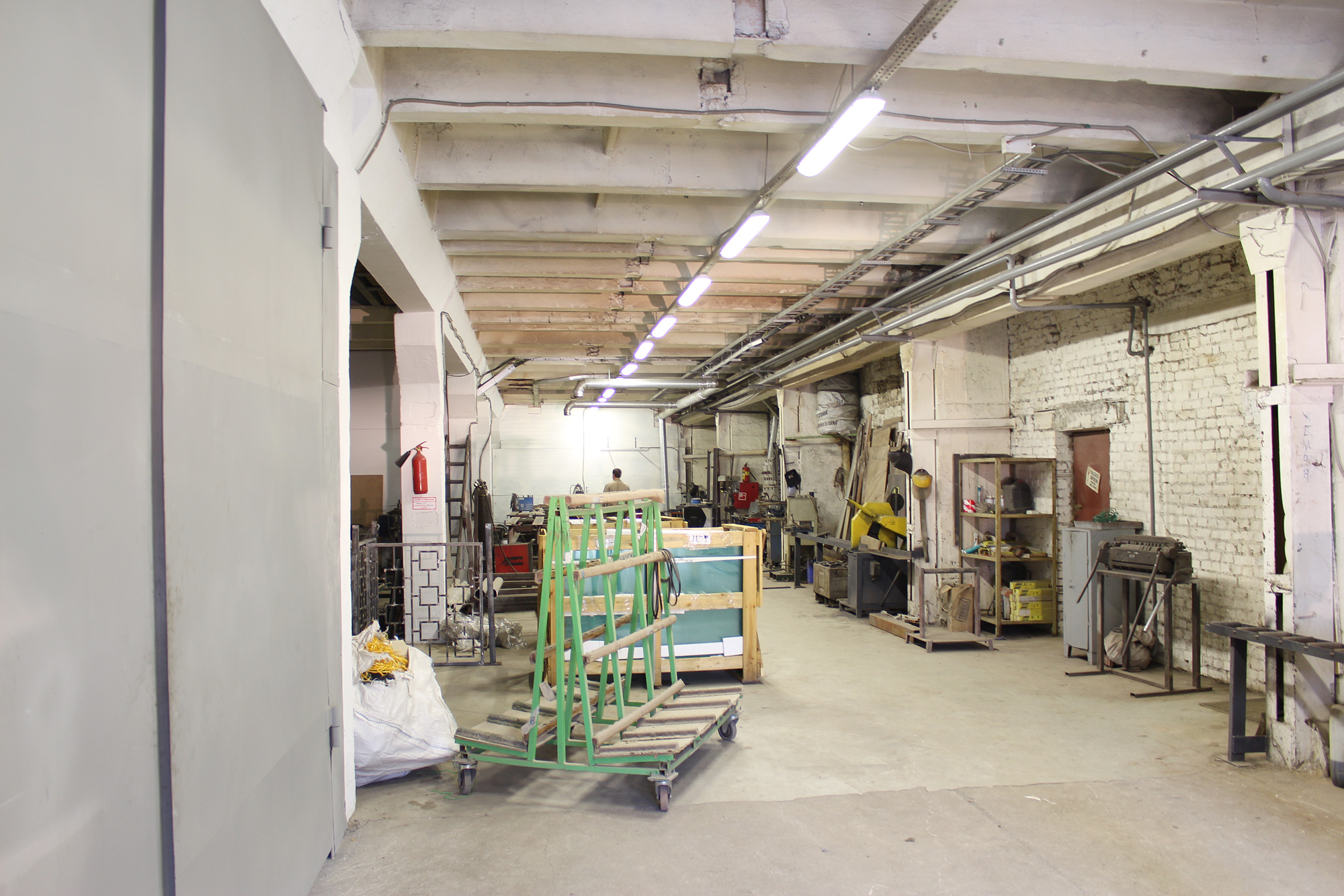 Компания ООО «Северный Металлоцентр» г. Санкт-Петербург находится на стадии расширения производственных площадей. Именно в этот момент руководители компаний столкнулись с проблемой сокращения затрат на электропотребление. Нашей компанией было произведено 30 светильников «ПромЛед Айсберг-40». Для освещения как производственных, так и складских помещений компании. На фото можно видеть только малую часть процесса установки светильников.