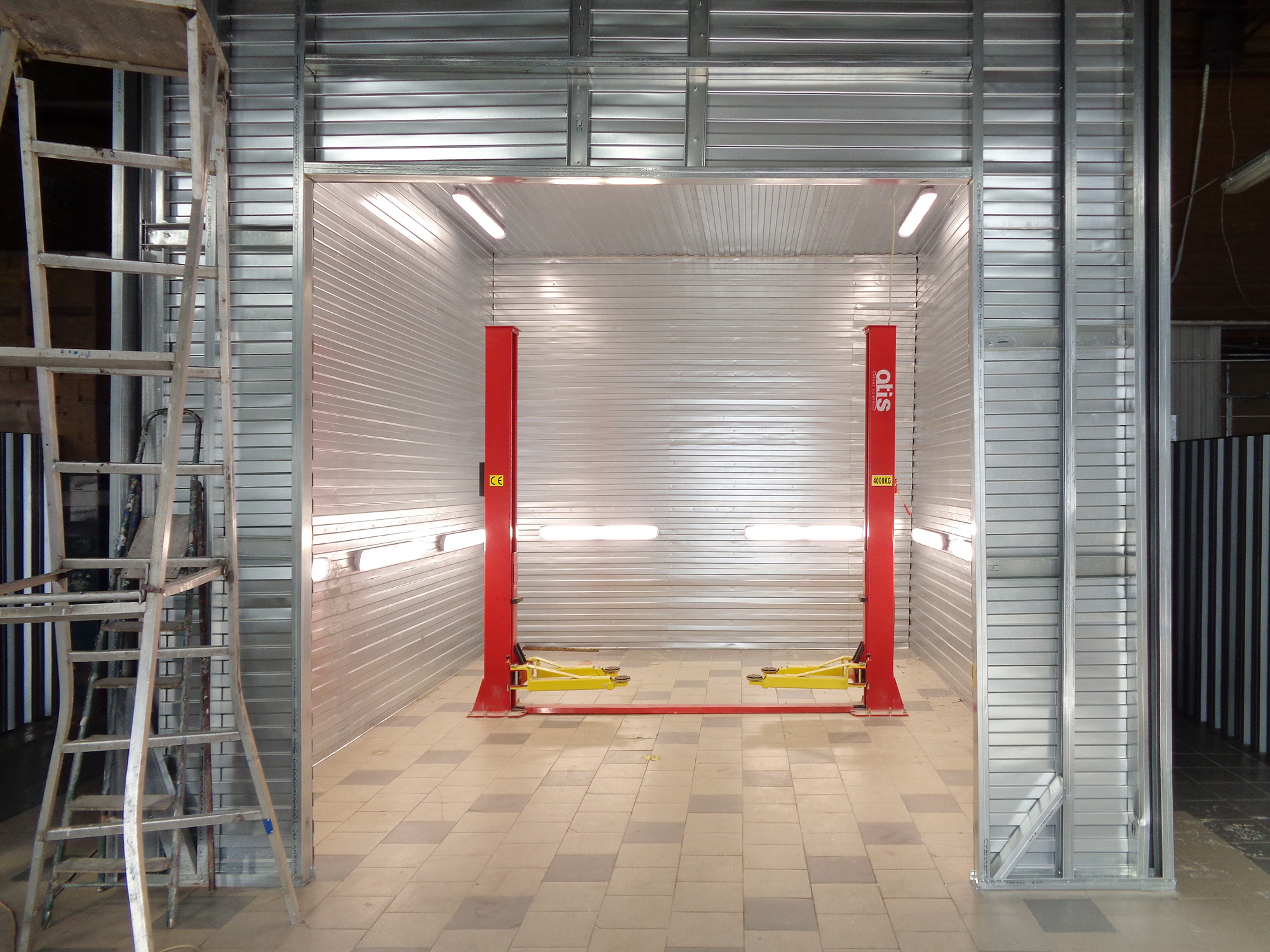 Компанией АО «Автосервис Парнас» (Санкт-Петебург, 4-й Верхний переулок, д 1А) были приобретены светильники серии Айсберг-60 для освещения зоны приемки автомобилей. Данные светильники предусматривают возможность различного вида крепления (подвесной и накладной монтаж). В данном примере был использован накладной монтаж светильников как на стенах бокса, так и на потолке. Отметим, что светильники, расположенные на стенах, находятся на уровне рабочей поверхности, поэтому заказчику был предложен вариант исполнения с дополнительными матовыми рассеивателями. Данная модель светодиодных светильников имеет класс IP65, что позволяет использовать их в помещениях с высокими требованями к пыле- и влагозащищенности.