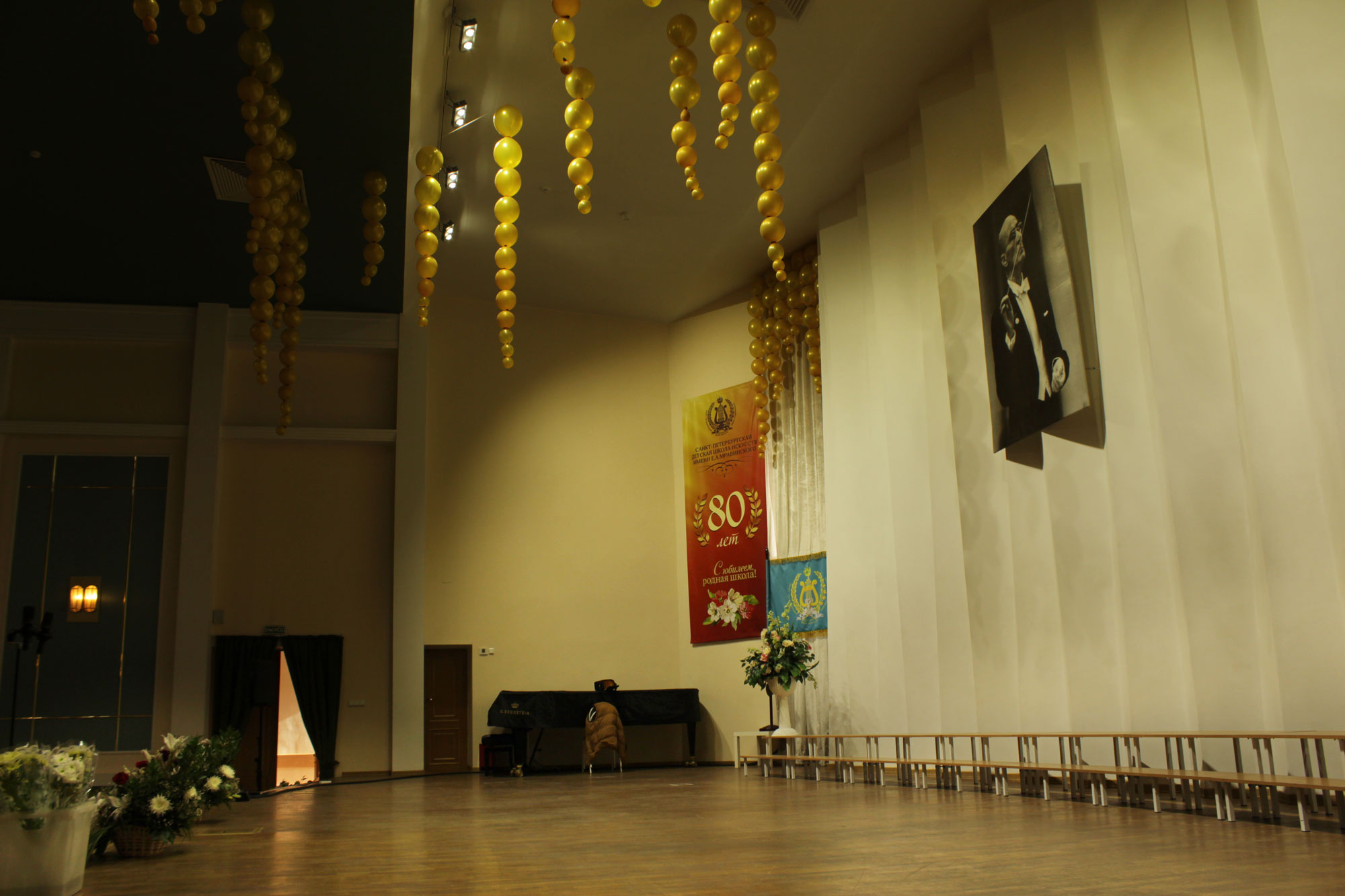 Детская школа искусств им. Е.А. Мравинского, расположенная по адресу: Санкт-Петербург, Варшавская ул., 44, решило поменять старые светильники МГЛ на светодиодные для освещения сцены в актовом зале. Основной проблемой старых светильников было то, что они сильно шумели, что создавало дополнительные звуки и мешало при выступлении на сцене. Так же учащиеся и сотрудники жаловались на низкую освещенность актового зала.
