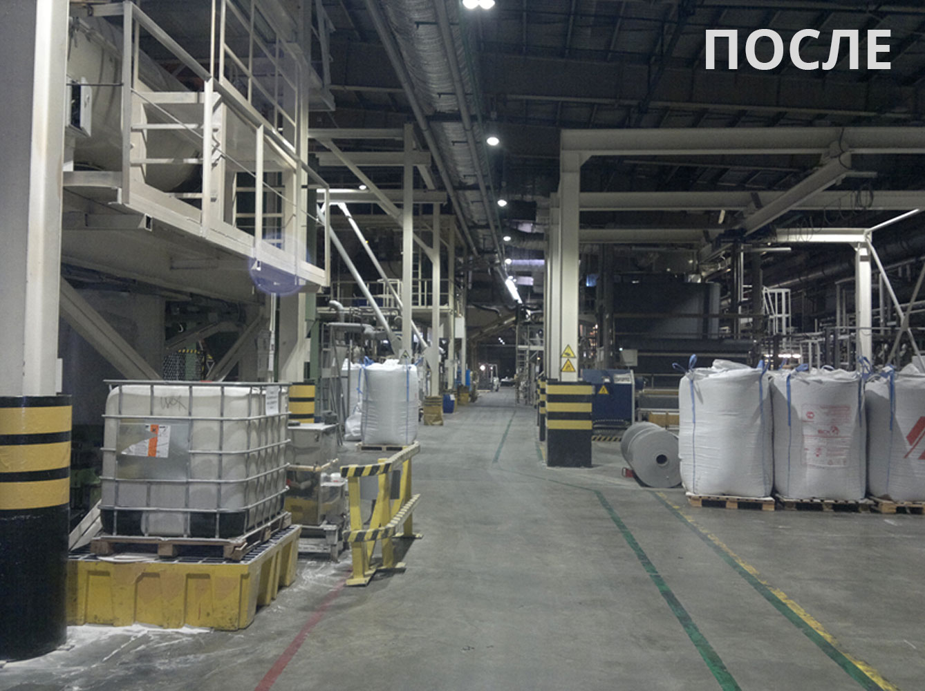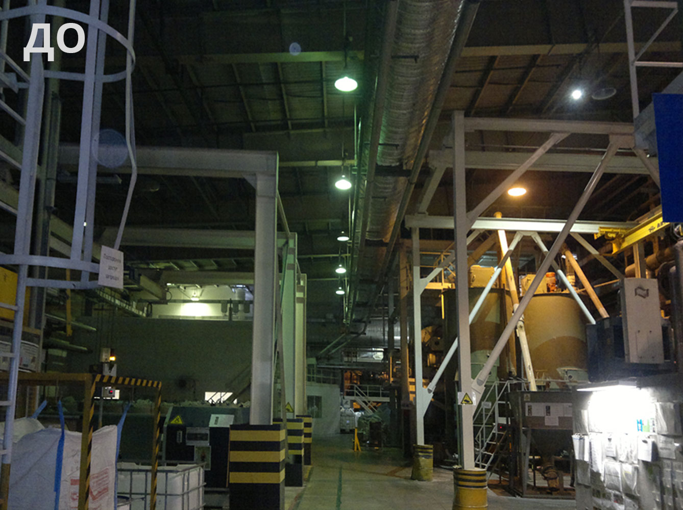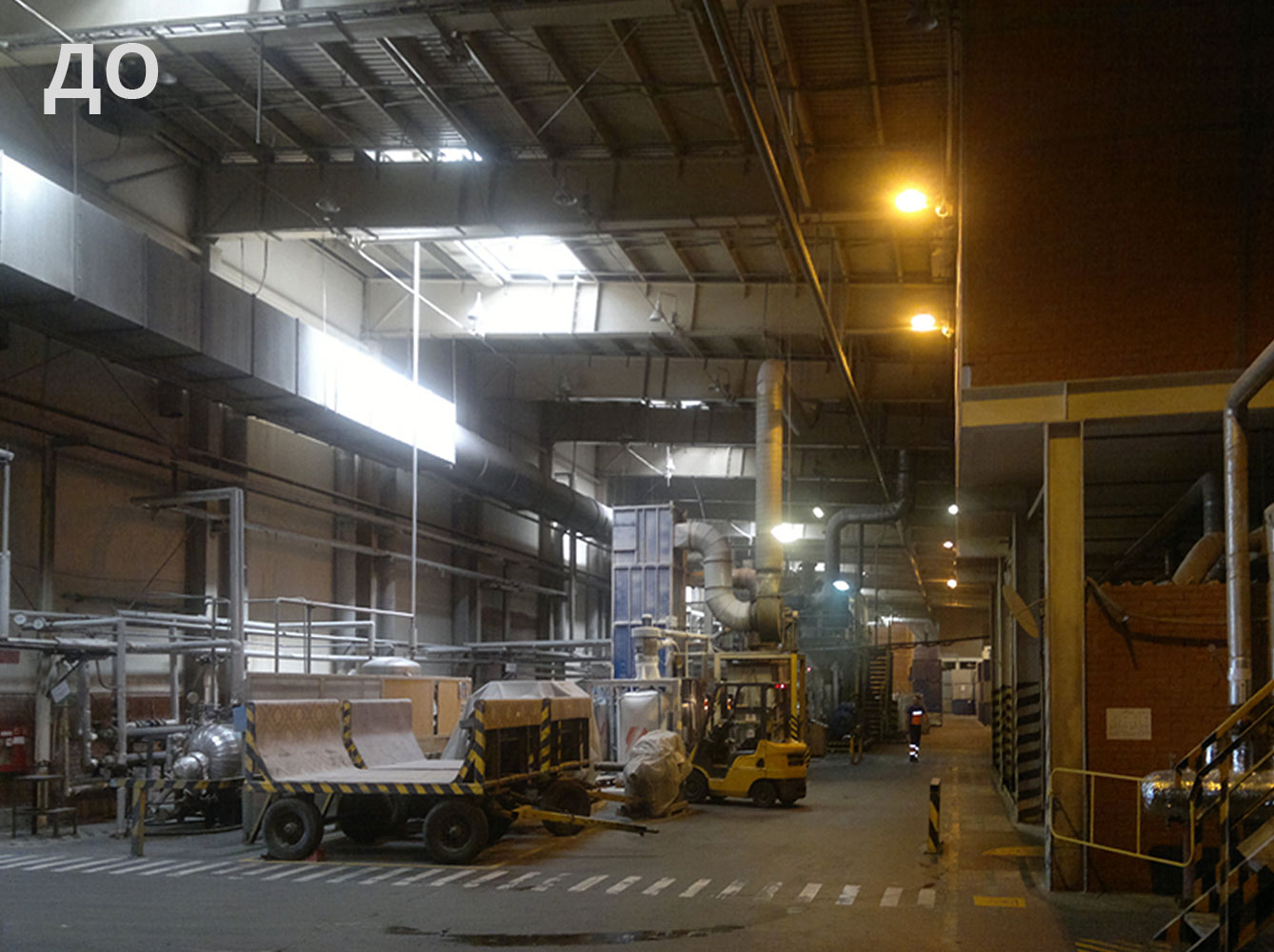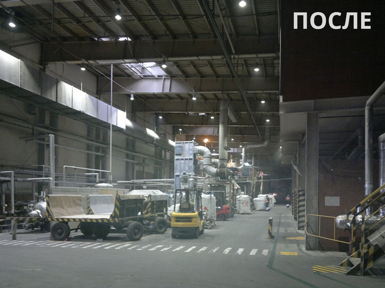 Поставленная задача: Заменить устаревшие лампы ДРЛ на светодиодные светильники и повысить уровень освещенности до 300 люкс
