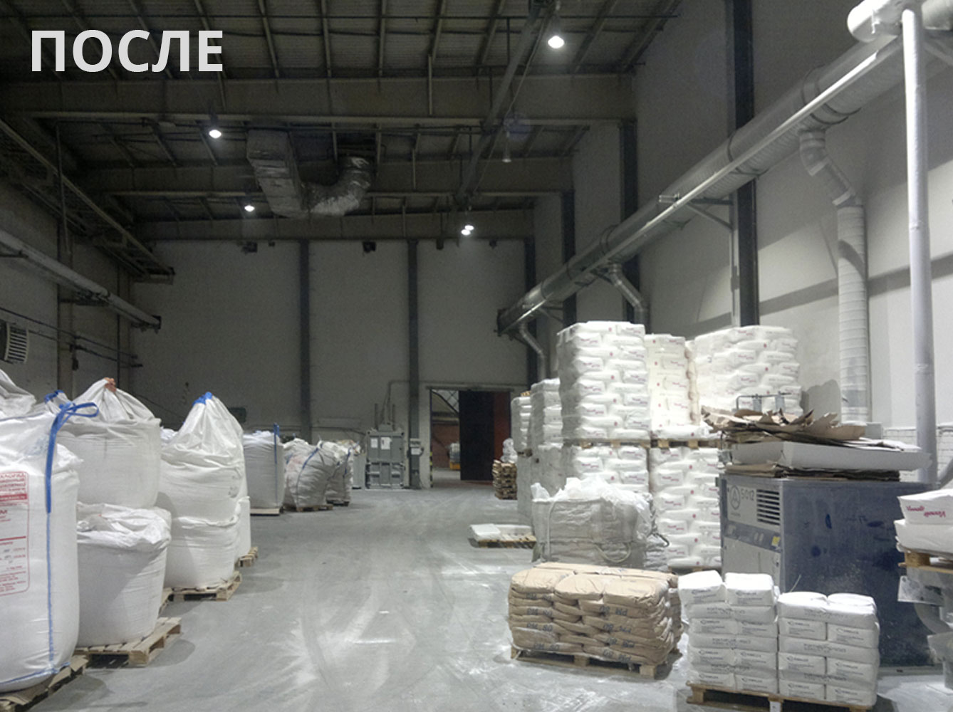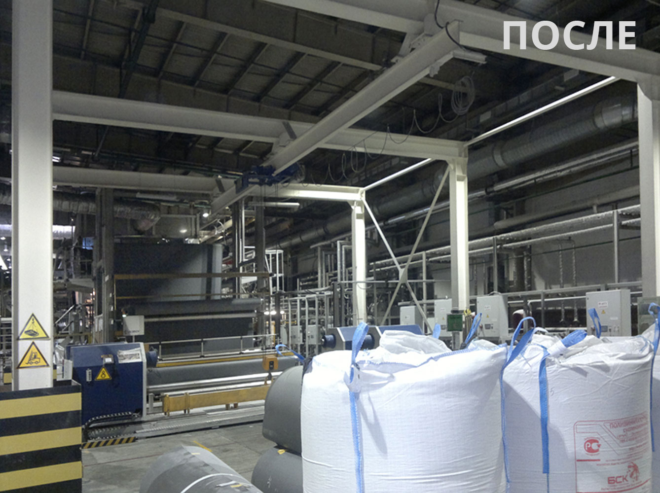 Предложенное осветительное решение: Чтобы решить поставленную задачу, менеджер нашей компании сделал расчеты в программе DiaLux по плану помещений и предложил разные светильники из серии ПромЛед Профи v2.0. На производственную линию установили светильники ПромЛед Профи v2.0-150 с линзой 90 градусов и ПромЛед Профи v2.0-200 с линзами 120 градусов, в фильтровую - ПромЛед Профи v2.0-200 с линзами 120 градусов, а на участок переработки - ПромЛед Профи v2.0-200 с линзами 120 градусов