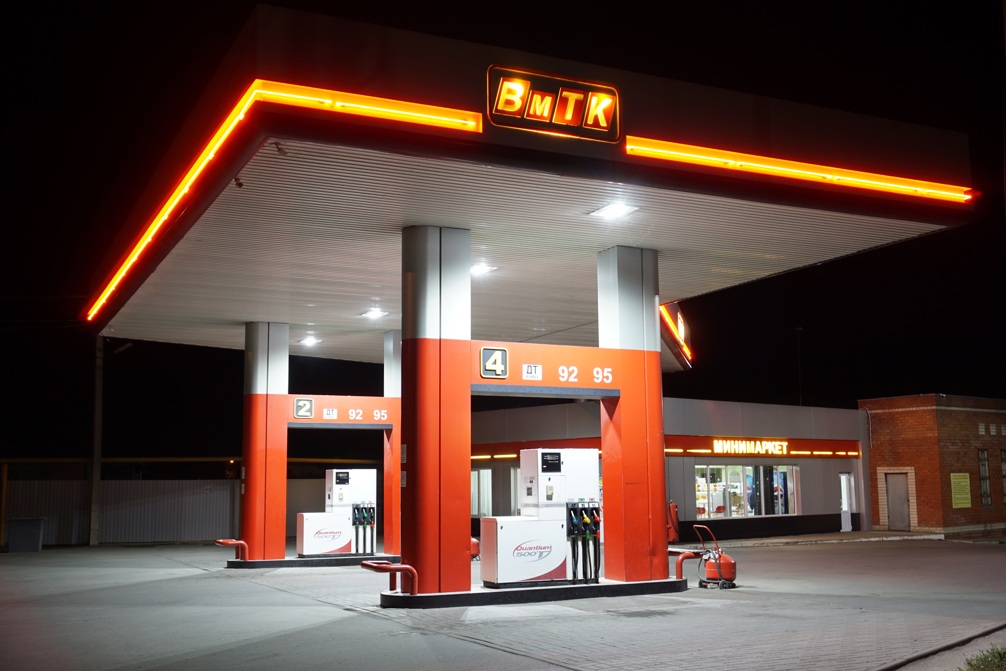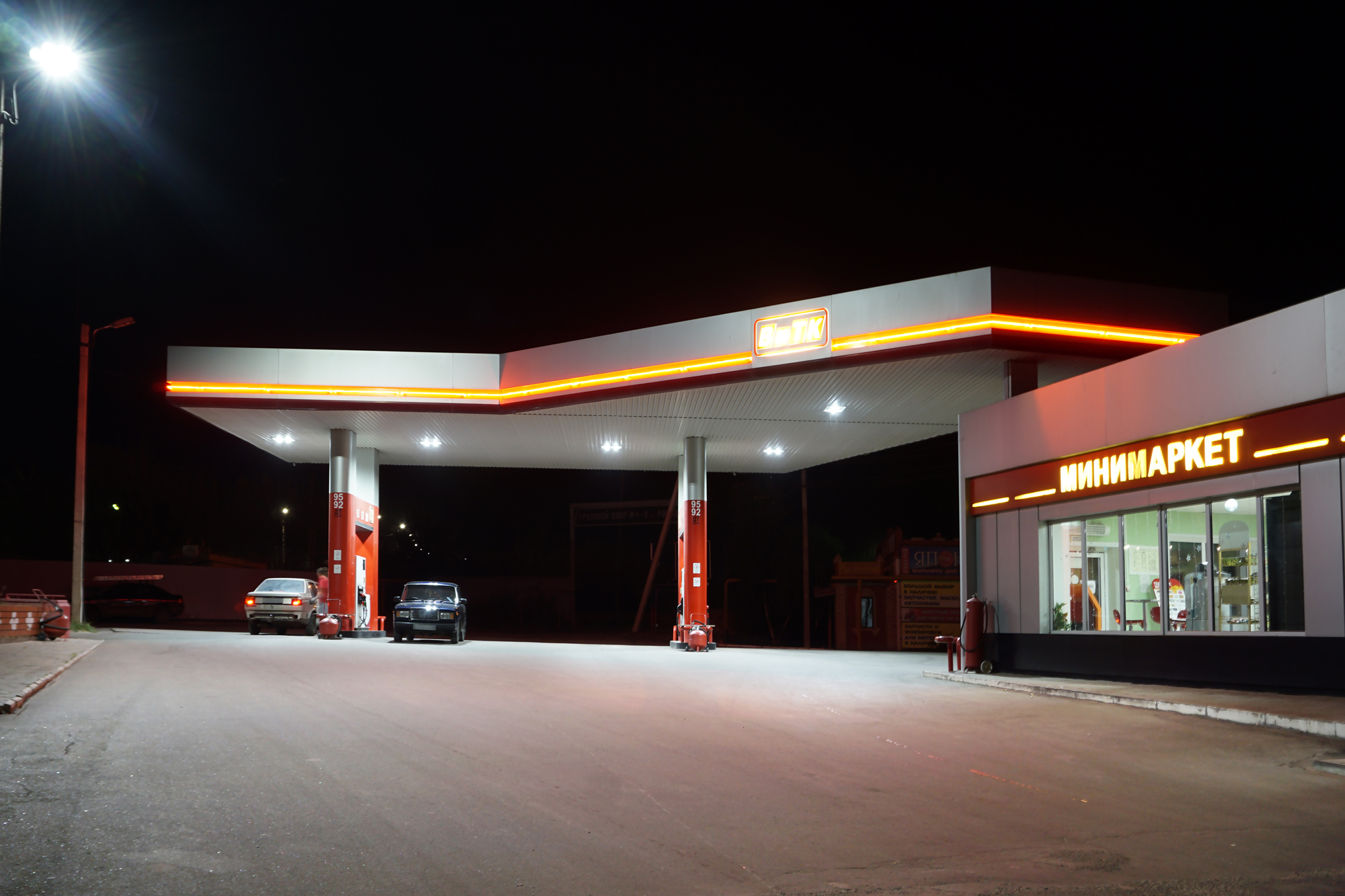 Поставленная задача: Замена устаревших светильников с лампами ДРЛ на новое светодиодное освещение на автозаправочных станциях в г. Россошь у сети ООО «ТрансОйл»