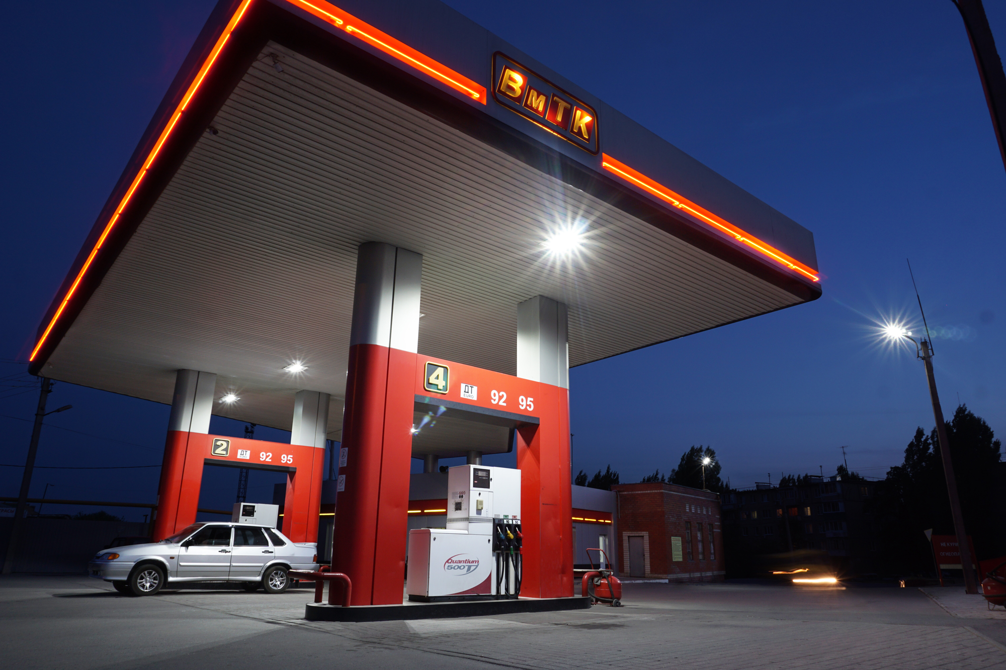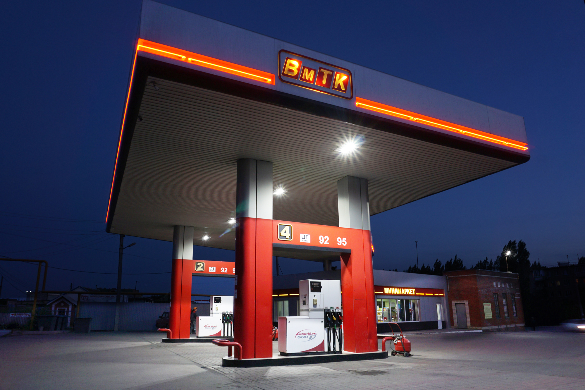 Предложенное осветительное решение: Установили светодиодные светильники ПромЛед АЗС-100 Экстра для освещения самой автозаправочной станции и светодиодные светильники ПромЛед Магистраль v2.0-100 для освещения прилегающей территории