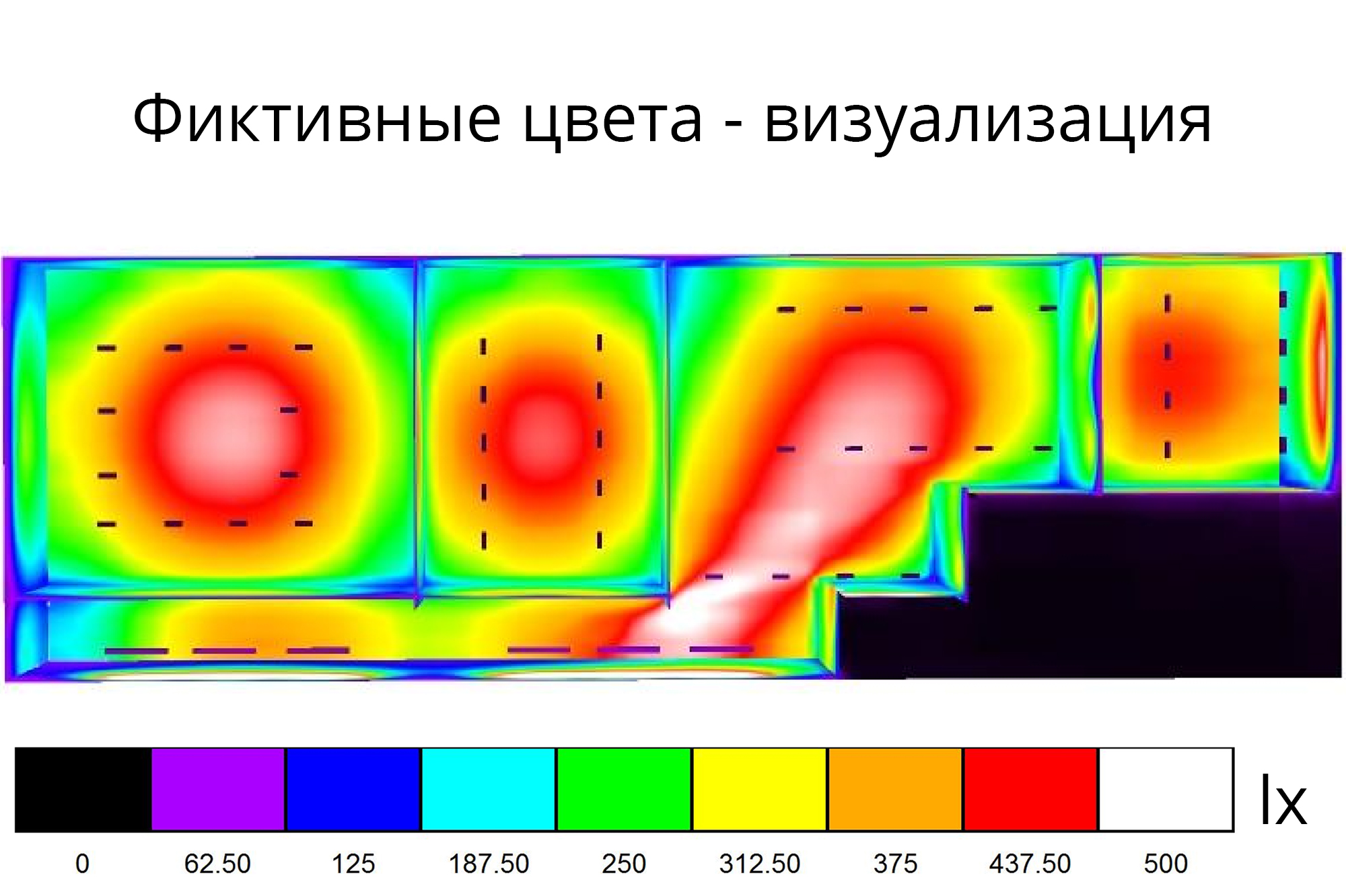Итог: Средняя освещенность 450-500 люкс