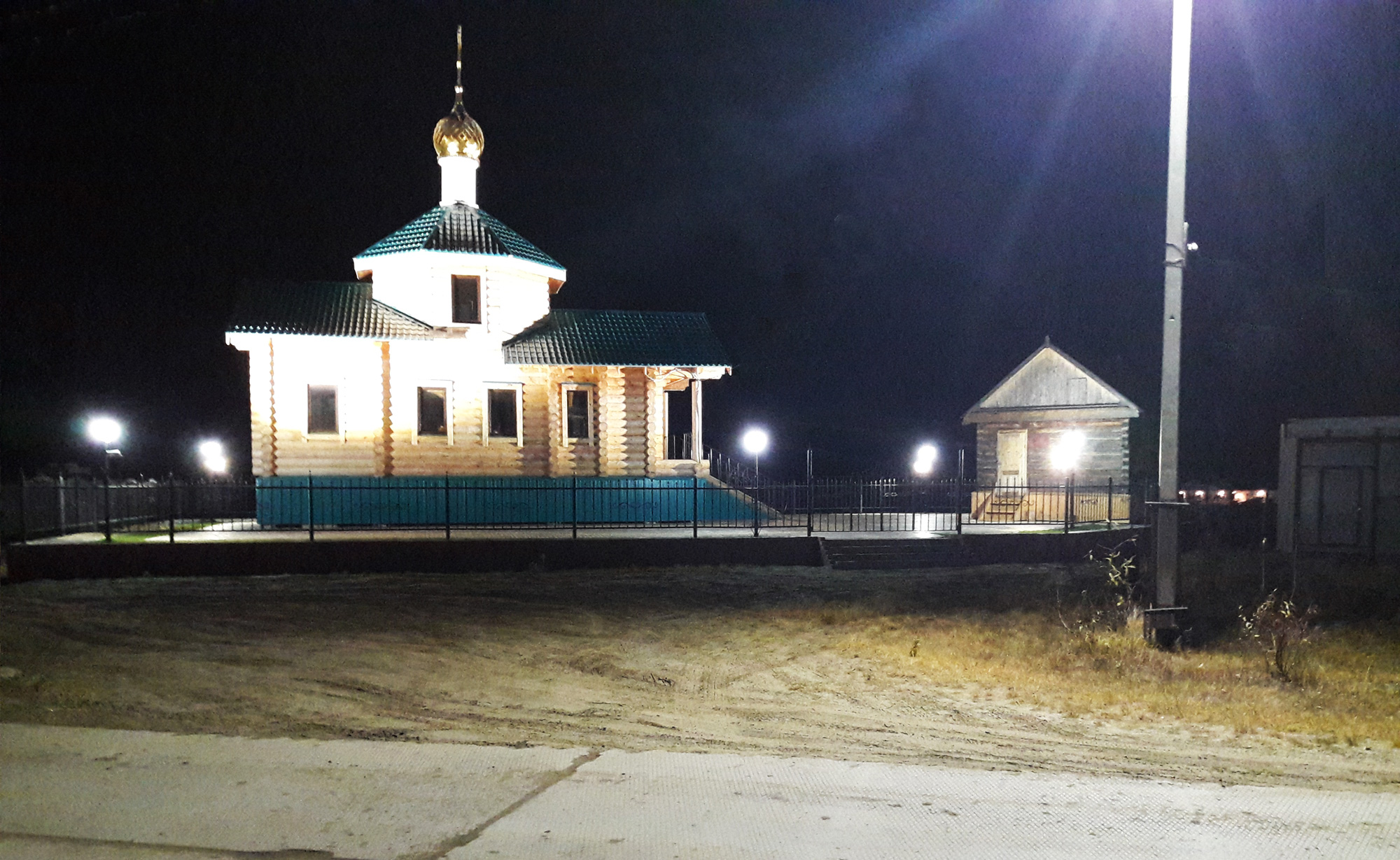Администрация муниципального образования поселка сельского типа село Панаевск обратилась в компанию «ООО Пром-Свет» с целью установки светильников для освещения церкви по адресу: ул. Обская, д. 5а. В ходе переговоров было принято решение по установке светодиодных светильников ПромЛед Прожектор v2.0-100. Данные светильники оснащены грозозащитой, что очень важно при установке на улице. Также Прожектор v2.0-100 имеет класс защиты IP 65, что позволяет использовать его практически в любых климатических зонах и агрессивных средах. Заказчиком была выбрана цветовая температура 4500К, которая дает нейтральный и спокойный свет.