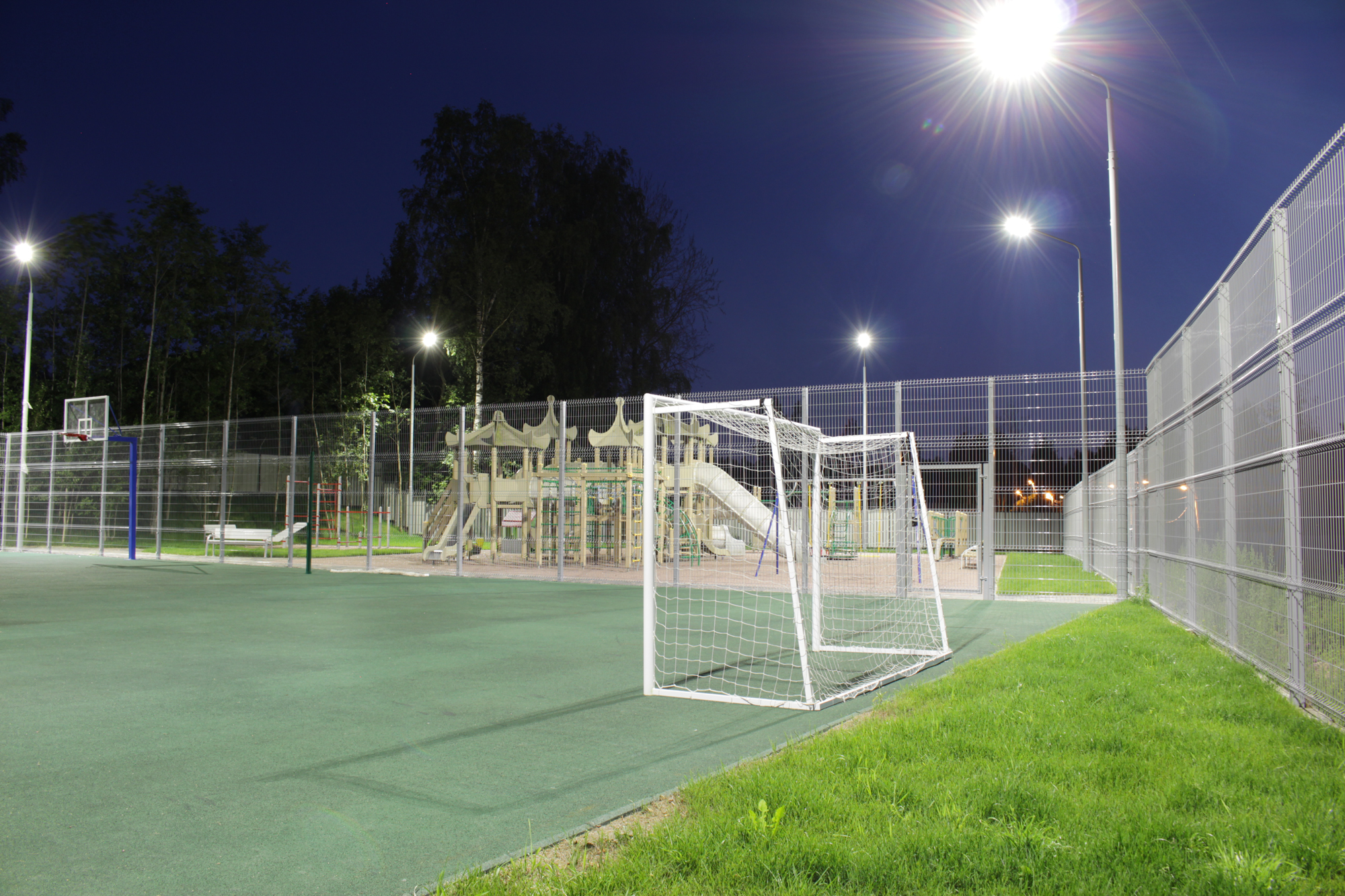Поставленная задача: Освещение футбольного поля и детской игровой площадки, добиться уровня освещенности 50 люкс