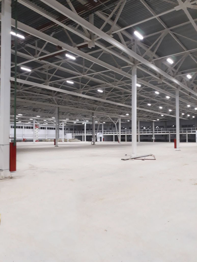 Предложенное осветительное решение: Менеджер нашей компании после изучения плана помещения и поставленной задачи предложил установить светодиодные светильники ПромЛед Т-Линия v2.0-100 Оптик. Светильники устанавливались на высоте 8 метров, ветки светильников пустили по балкам, за счет поворотного кронштейна монтаж существенно упростился
