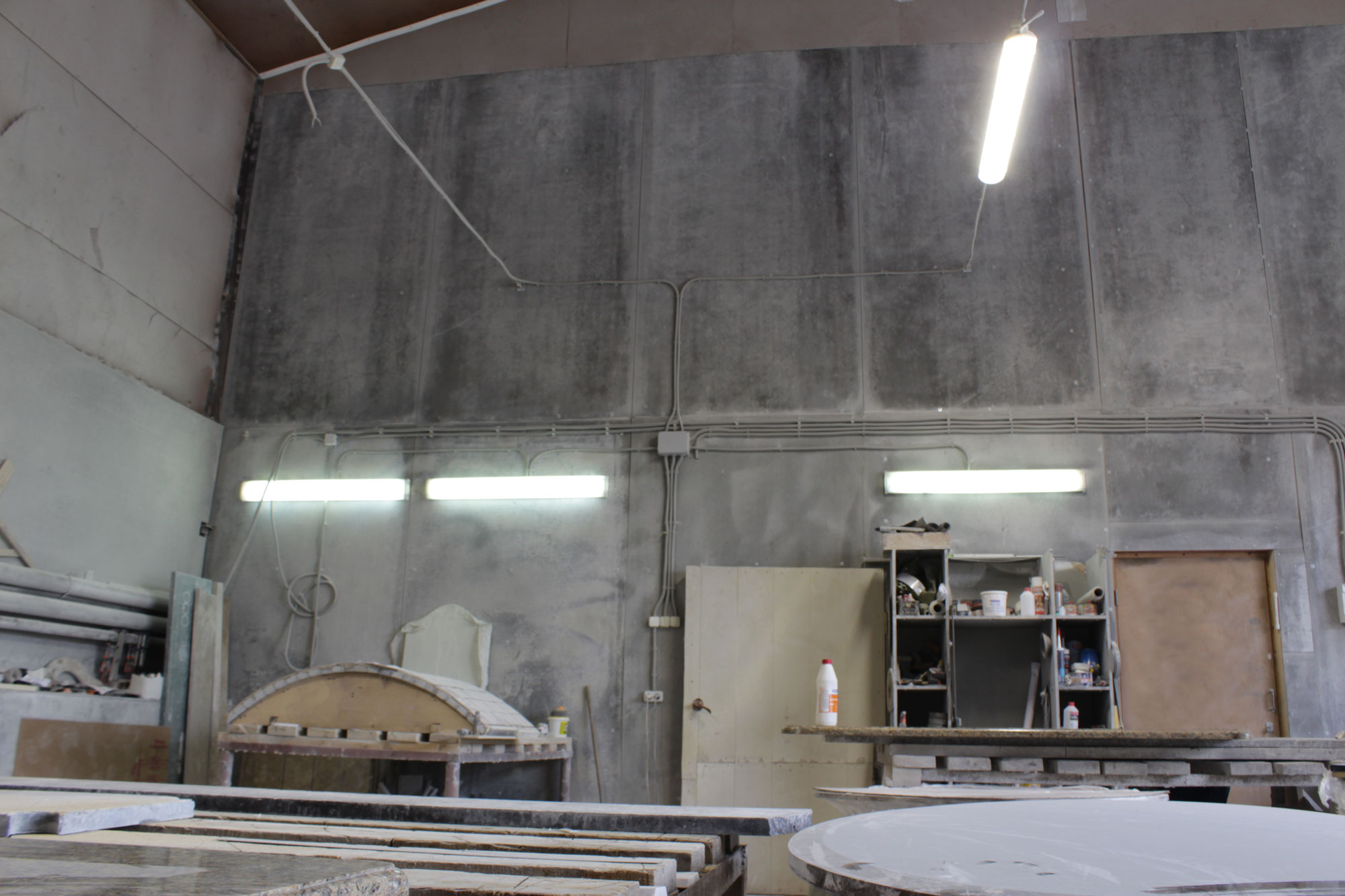 Предложенное осветительное решение: Установили светодиодные светильники ПромЛед Айсберг-60. Данные светильники обладают классом защиты IP65. Мы рекомендуем использовать именно эту модель в условиях высокого пылеобразования в помещении