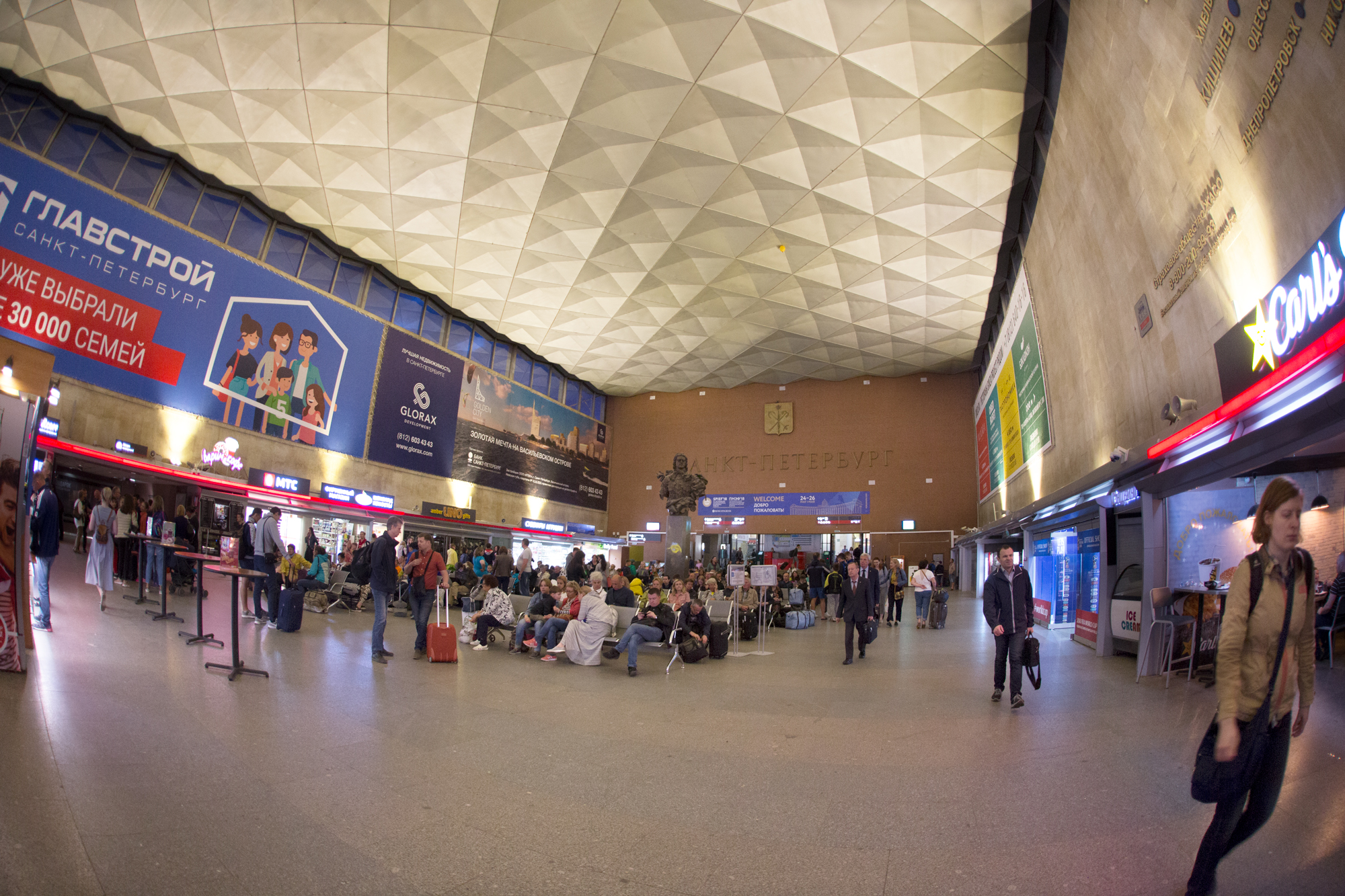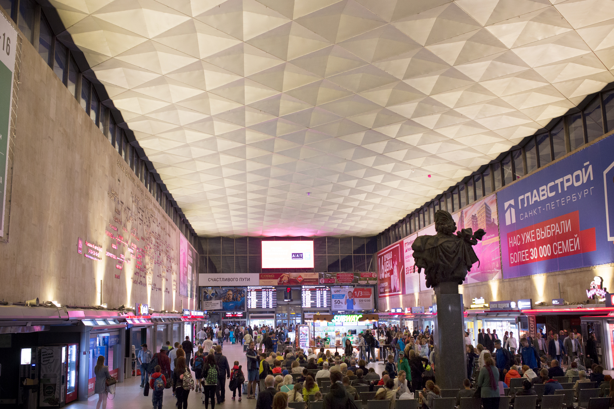 Поставленная задача: Освещение большого зала Московского вокзала теплым светом вдоль стен