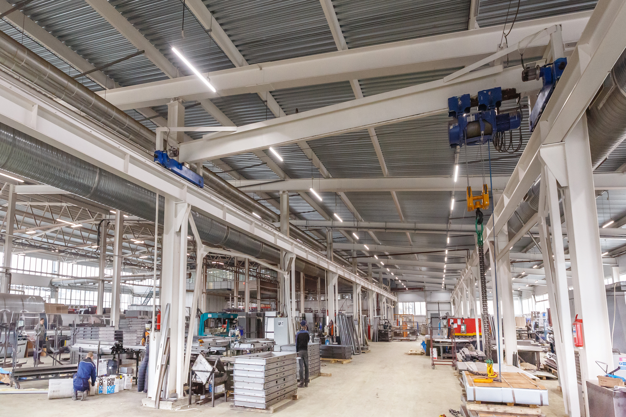 Предложенное осветительное решение: для освещения производственных площадей установили светодиодные светильники Т-Линия v2.0-60 с цветовой температурой 4500К и рассеивателем «Прозрачный» для достижения максимального светового потока. Для освещения складских помещений установили светодиодные светильники Т-Линия v2.0 100 Оптик Склад с цветовой температурой 4000К.