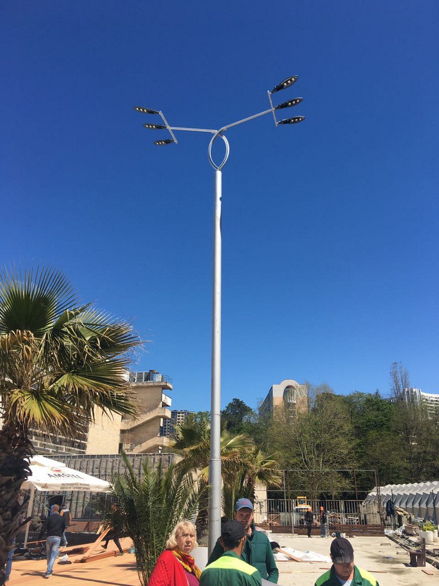 На сайт нашей компании месяц назад поступила заявка от компании АО «ГК «Жемчужина» на освещение автостоянки в городе Сочи, ул. Черноморская, дом 3. Так как высота подвеса светильника составляет более 12 метров, а мачта для их крепления только одна, нашими специалистами был предложен светильник ПромЛед Кобра-150. После предварительных расчетов в программе DiaLux было принято решение, что это единственный возможный вариант при учете цена – качество.