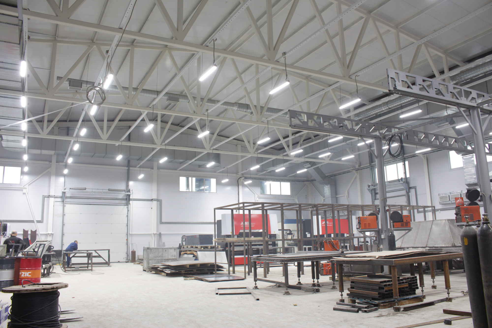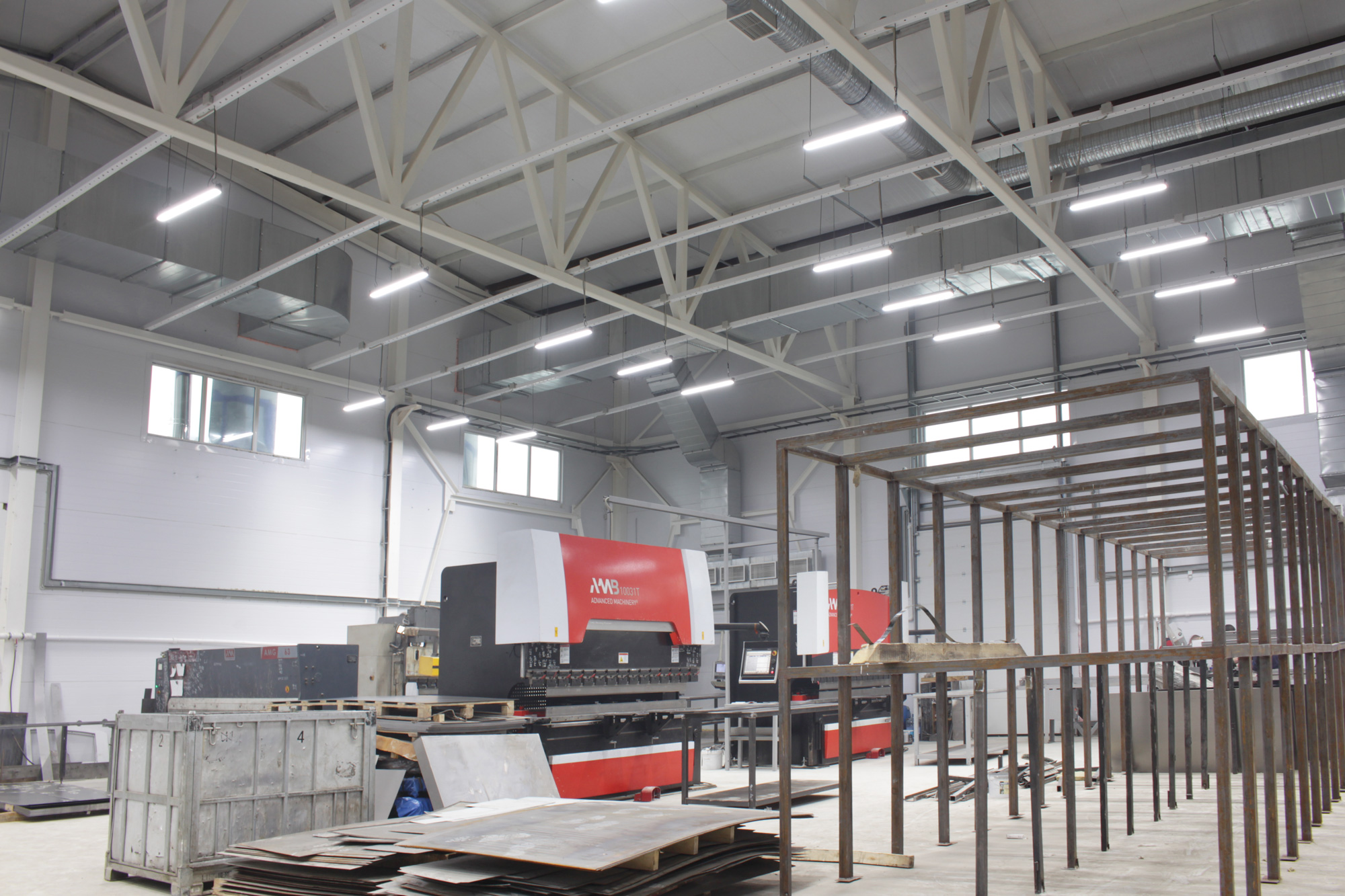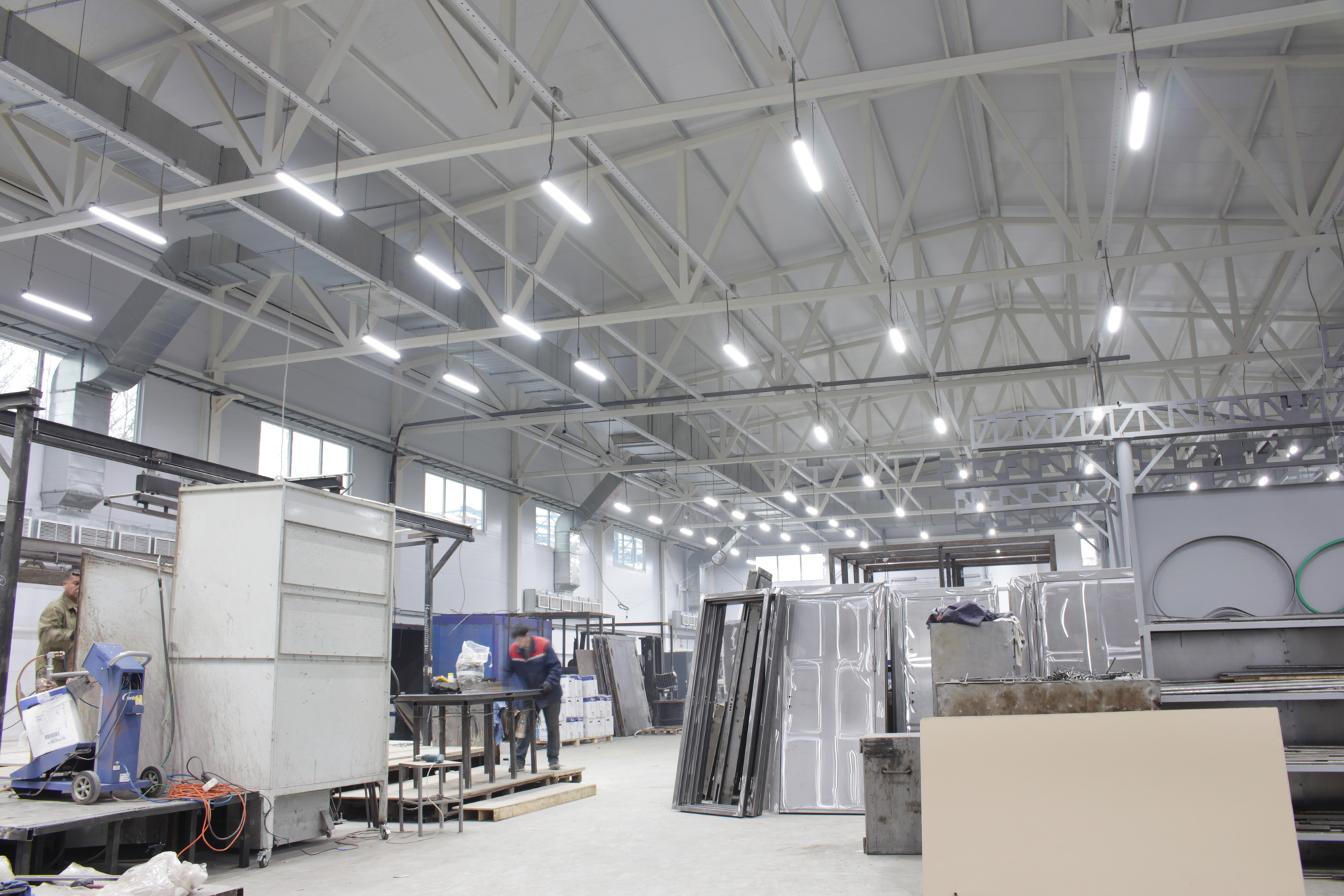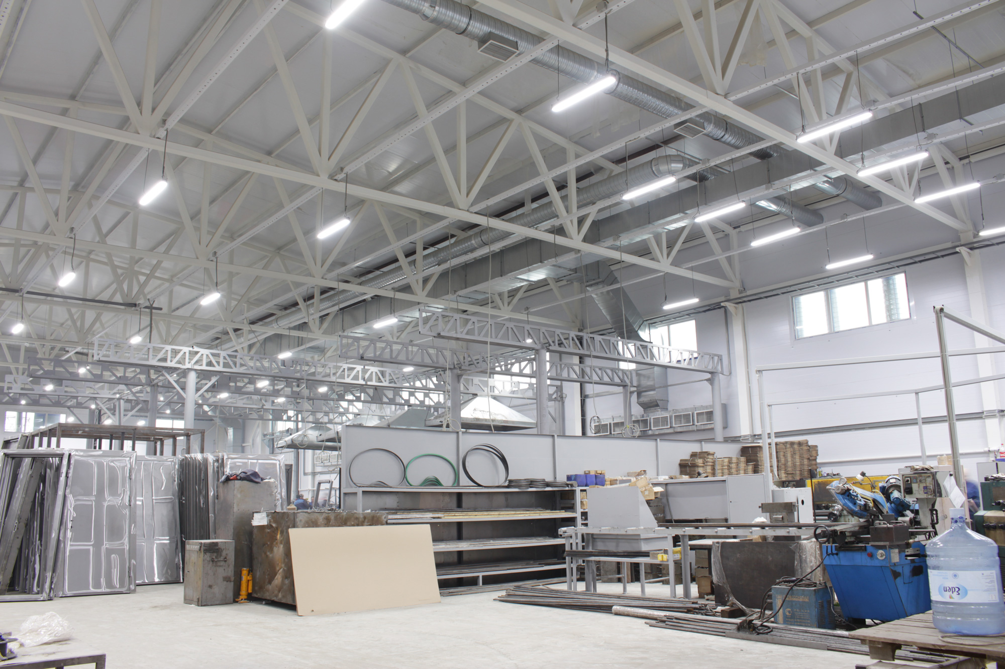 Предложенное осветительное решение: Для освещения производственных зон установили светодиодные светильники ПромЛед Т-Линия v2.0-100. Серия светильников Т-Линия v2.0 была разработана специально для освещения производственных помещений, уровень защищенности IP67, световая эффективность 115 лм/Вт. Для малых промышленных помещений установили светодиодные светильники ПромЛед Айсберг-40. В коридорах и на лестницах - светильники ПромЛед Кронос v2.0-12 ЭКО, в кабинетах - светильники ПромЛед Офис-40