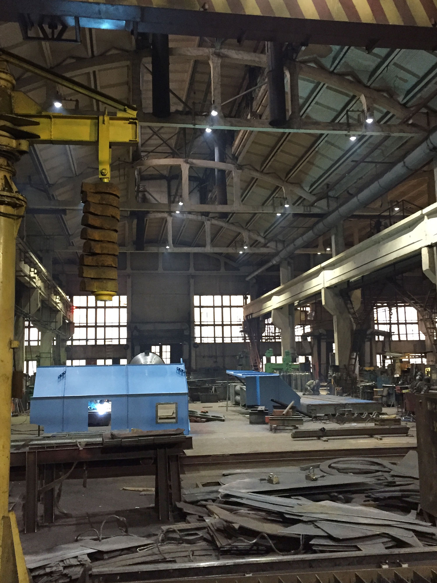 Предложенное осветительное решение: Исходя из потребности приобретения купольных светильников и большой высоты подвеса, менеджер нашей компании предложил заказчику заменить устаревшие лампы ДРЛ-400 на новые светодиодные светильники ПромЛед Профи v2.0-100