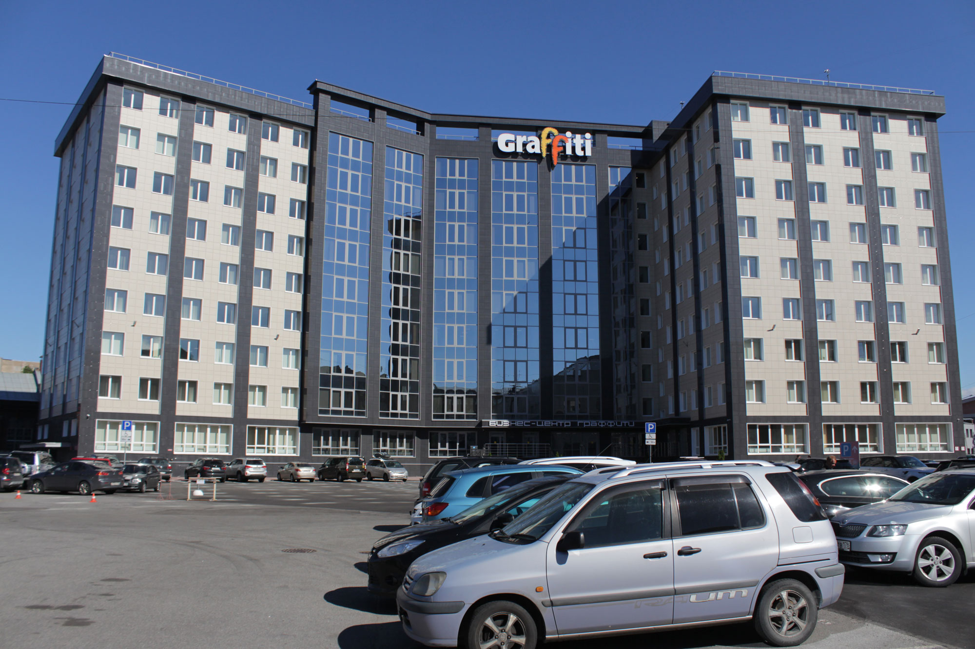 Бизнес-центр «Граффити» входит в состав сети бизнес-центров под общим названием «Кондратьевский квартал» и относится к БЦ премиум-класса. Основой задачей перед компанией «Пром-Свет» на этапе установки светильников было попасть в цвет стен, выбранный изначально при строительстве здания. Помимо этого, уровень освещенности в офисах должен был соответствовать нормам освещенности в 400 люкс. Немаловажным для владельцев здания было так же приобрести светильники лучшего качества, с гарантией пять лет.
