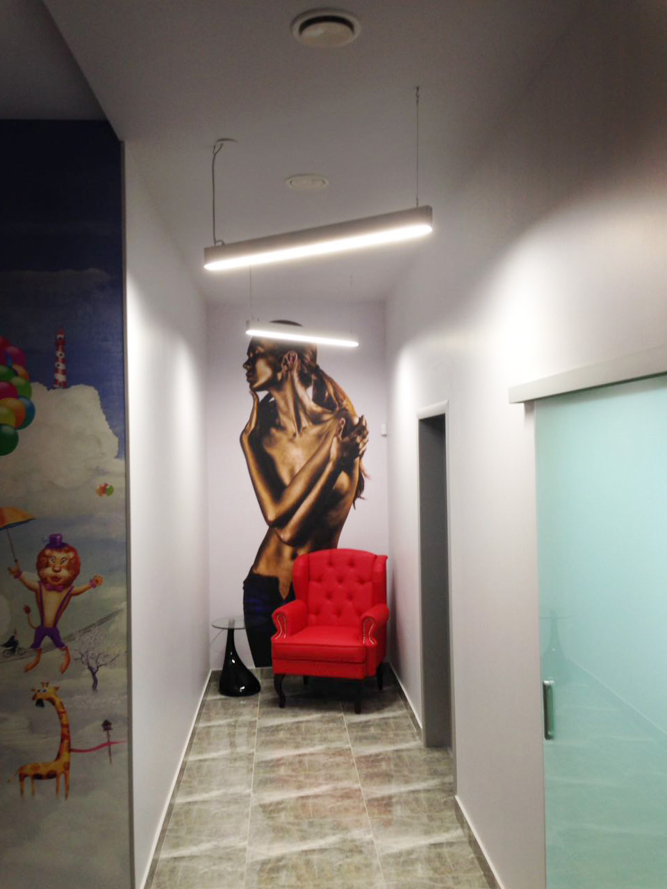 Итог: было применено яркое, необычное решение по монтажу светильников. Общая освещенность стала на уровне 300 люкс, а освещенность на рабочих местах - 450 люкс, что выше требуемого минимума и полностью удовлетворяет требования заказчика.