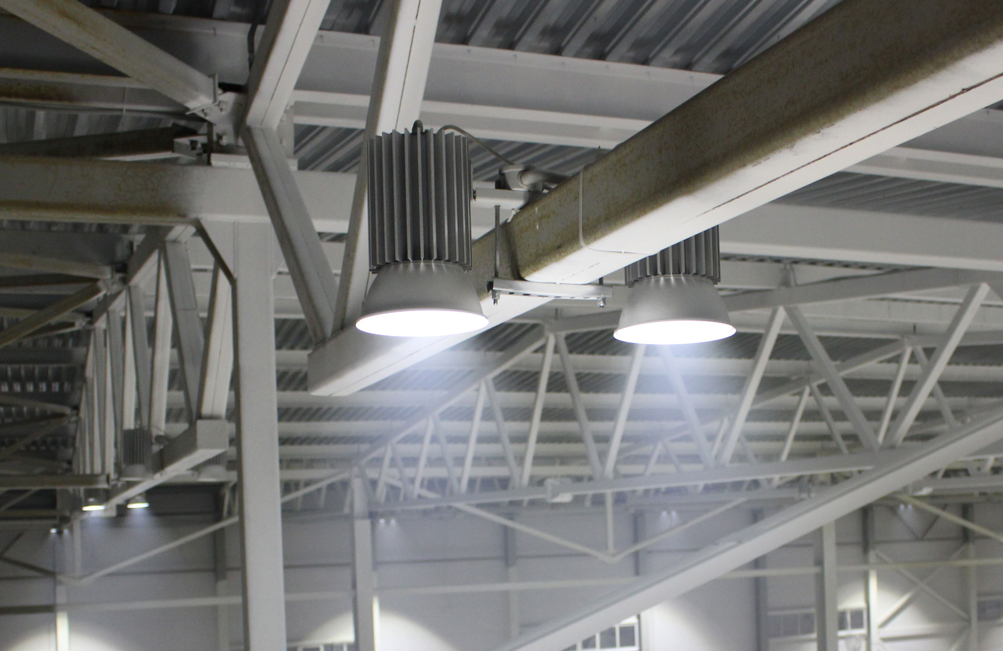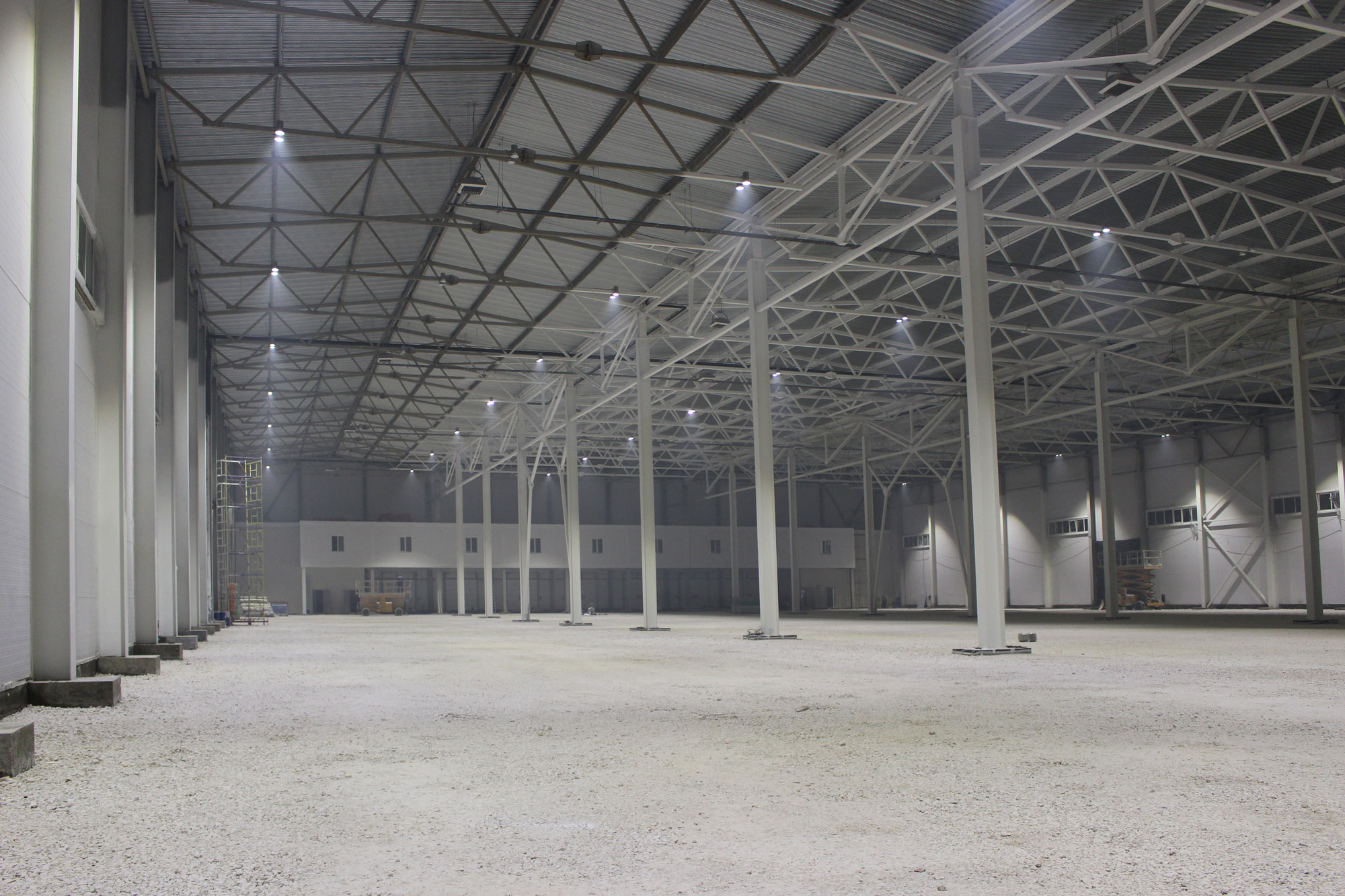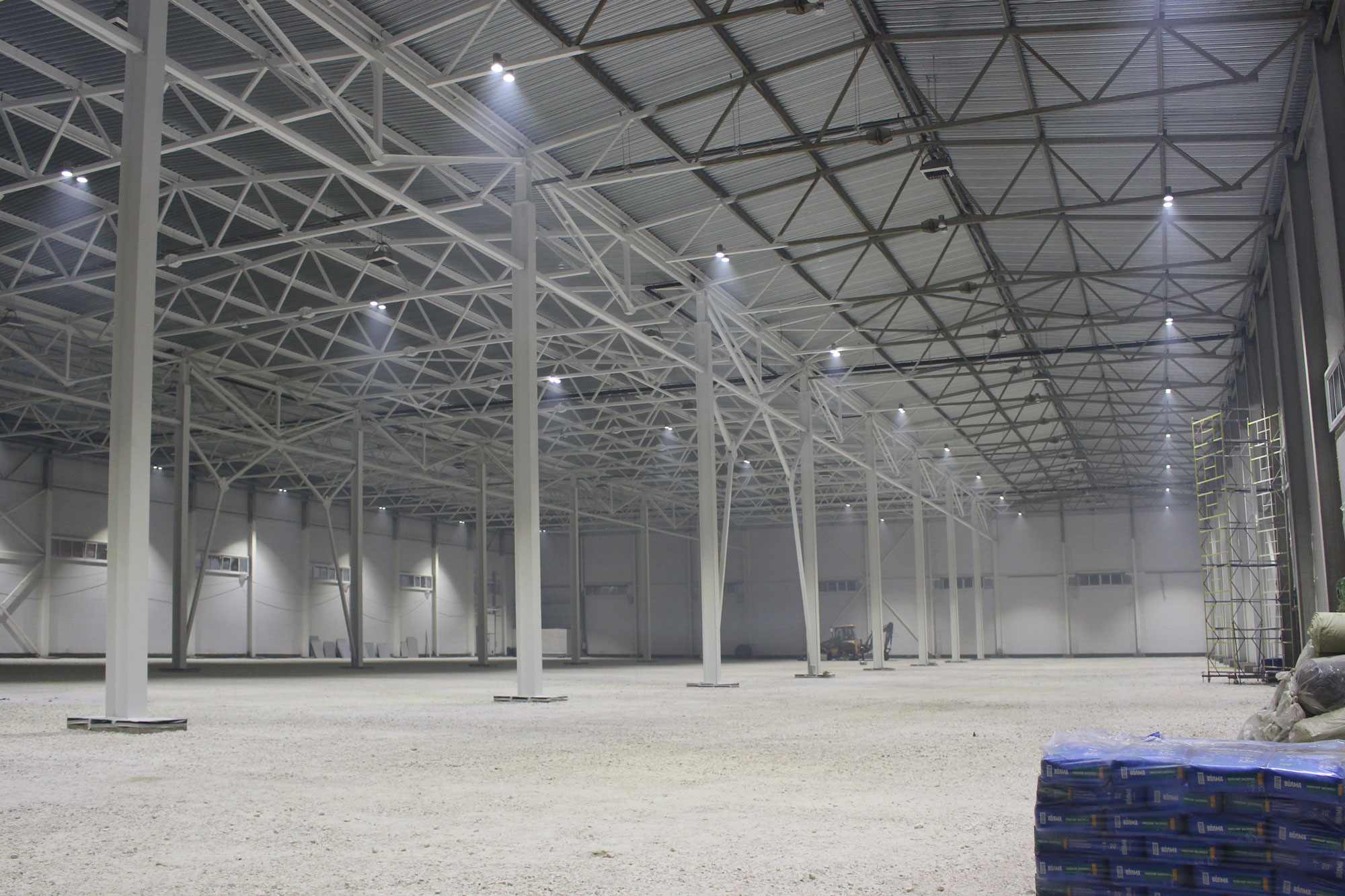 Предложенное осветительное решение: Для освещения нового складского комплекса были предложены светильники серии ПромЛед Профи v2.0-200. Особенностью данной модели является относительно невысокая стоимость в сравнении с аналогами того же класса, что достигается благодаря облегченному корпусу собственной разработки. Для данного проекта была изменена конструкция светильника – сделали дополнительный кронштейн между светильниками, что дало возможность установить светильники на металлические балки