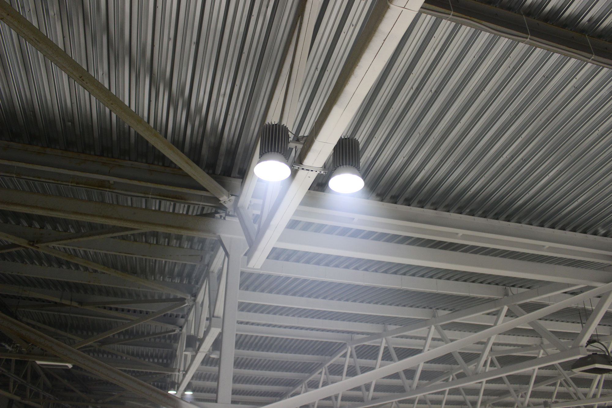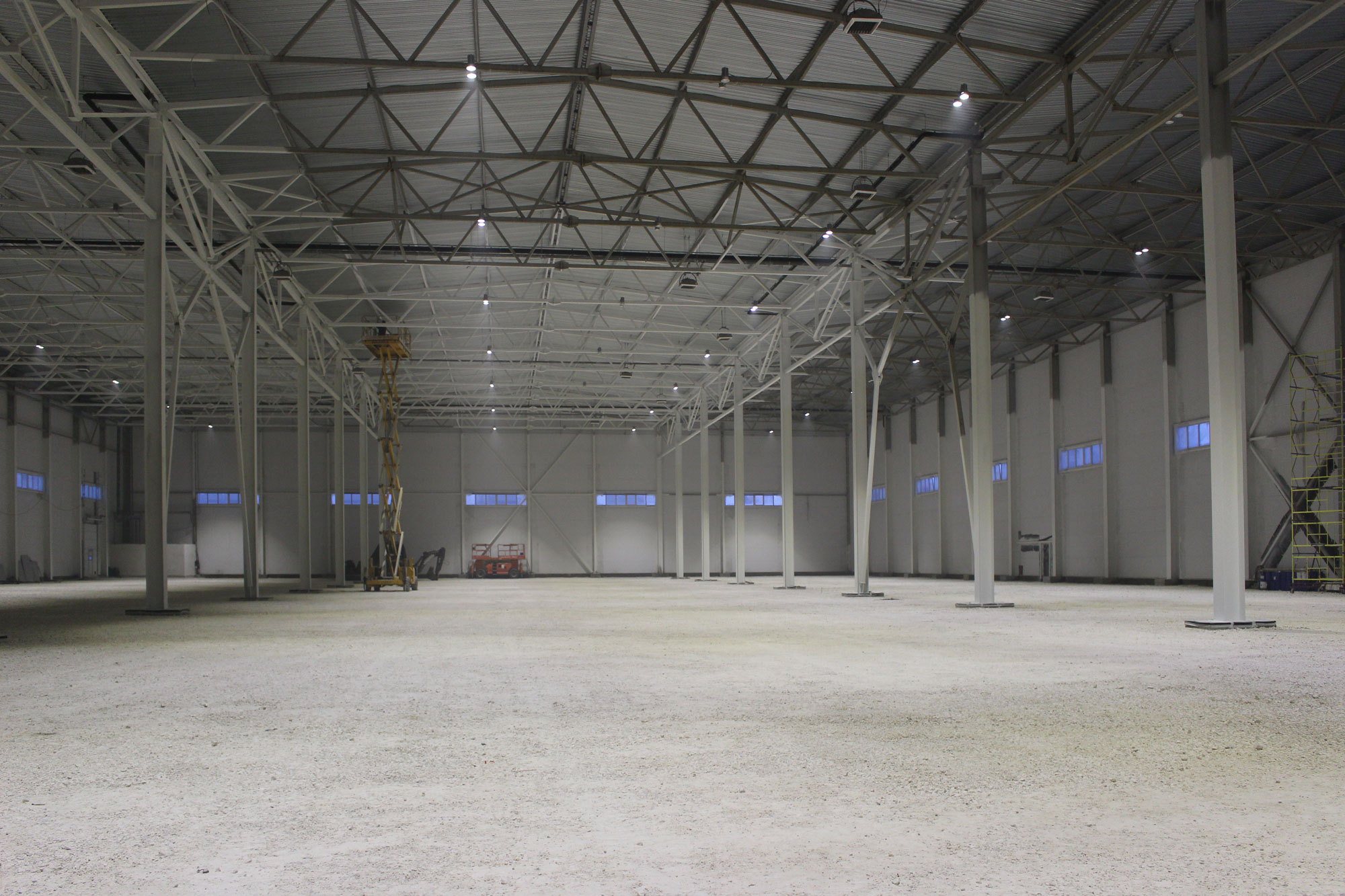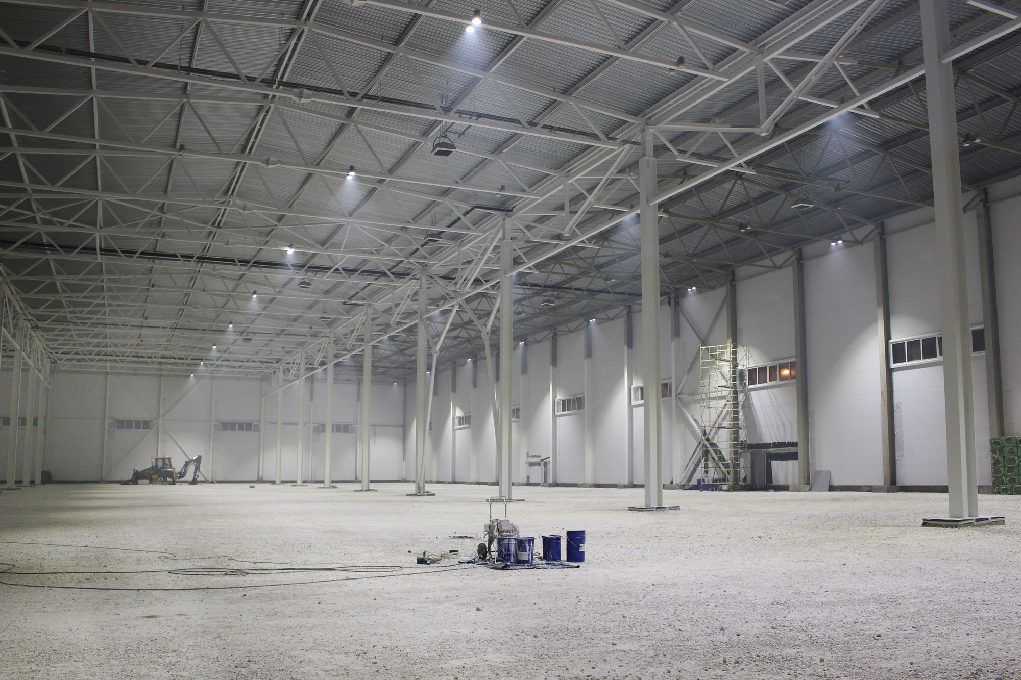 Предложенное осветительное решение: Для освещения нового складского комплекса были предложены светильники серии ПромЛед Профи v2.0-200. Особенностью данной модели является относительно невысокая стоимость в сравнении с аналогами того же класса, что достигается благодаря облегченному корпусу собственной разработки. Для данного проекта была изменена конструкция светильника – сделали дополнительный кронштейн между светильниками, что дало возможность установить светильники на металлические балки