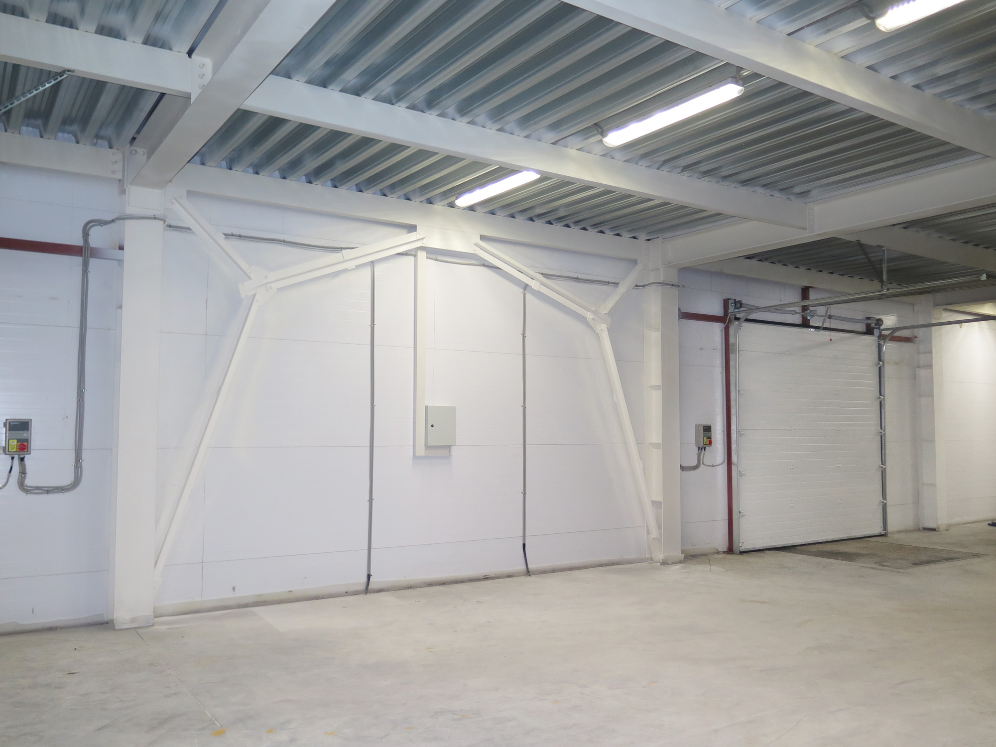 Предложенное осветительное решение: Для внутреннего освещения склада установили светодиодные светильники ПромЛед Профи v2.0-100, в погрузочно-разгрузочной зоне — ПромЛед Айсберг-40. Для освещения фасада использовали светильники ПромЛед Прожектор v2.0-100, для уличного освещения дорог — ПромЛед Кобра-100 Экстра.