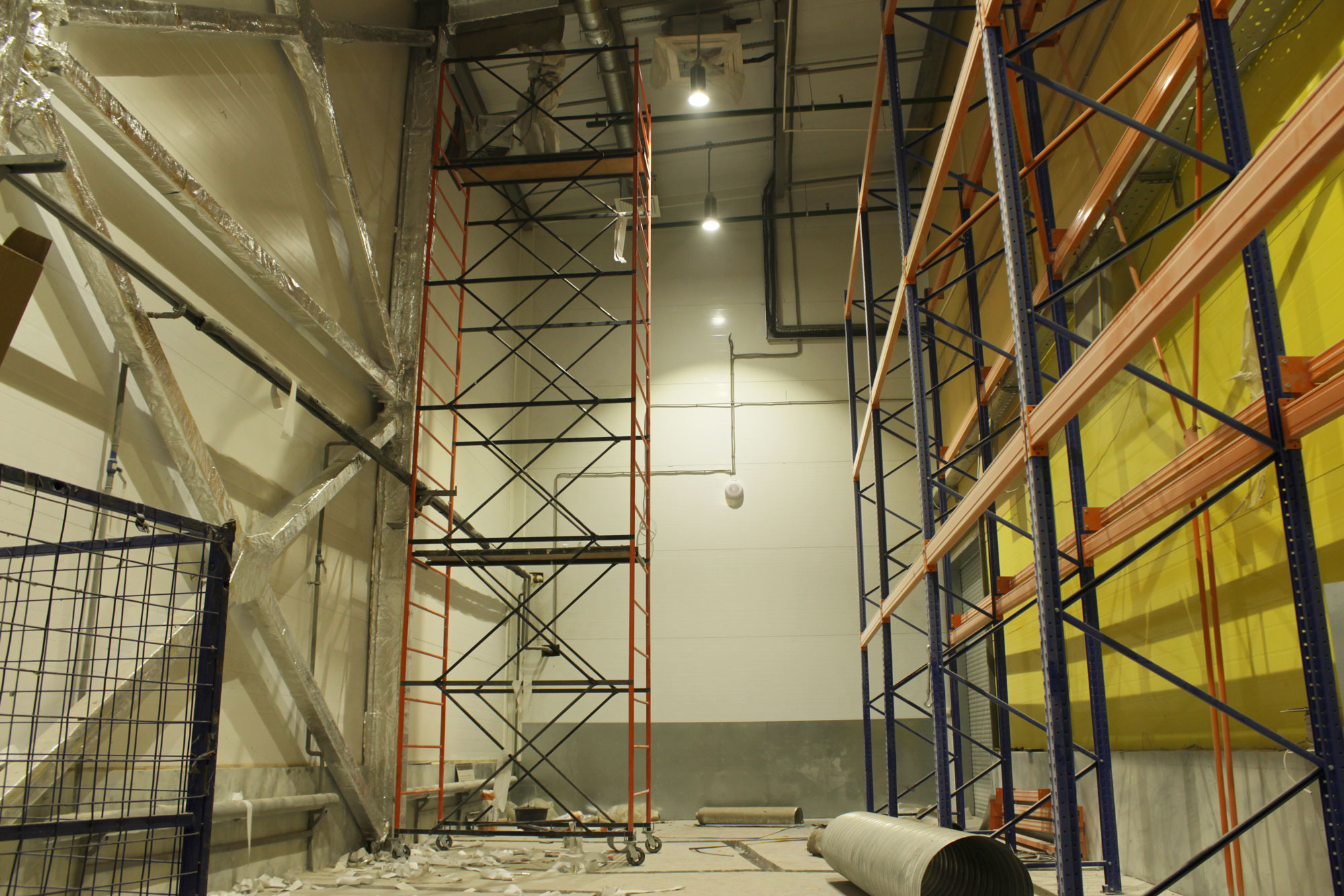 Мы поставили 20 светильников серии Промлед ПРОФИ v2.0-150 4500К 90 градусов, которые были расположены над стеллажами. Линза 90 гр. обеспечивает равномерную освещенность пространства как самих стеллажей, так и на уровне пола.