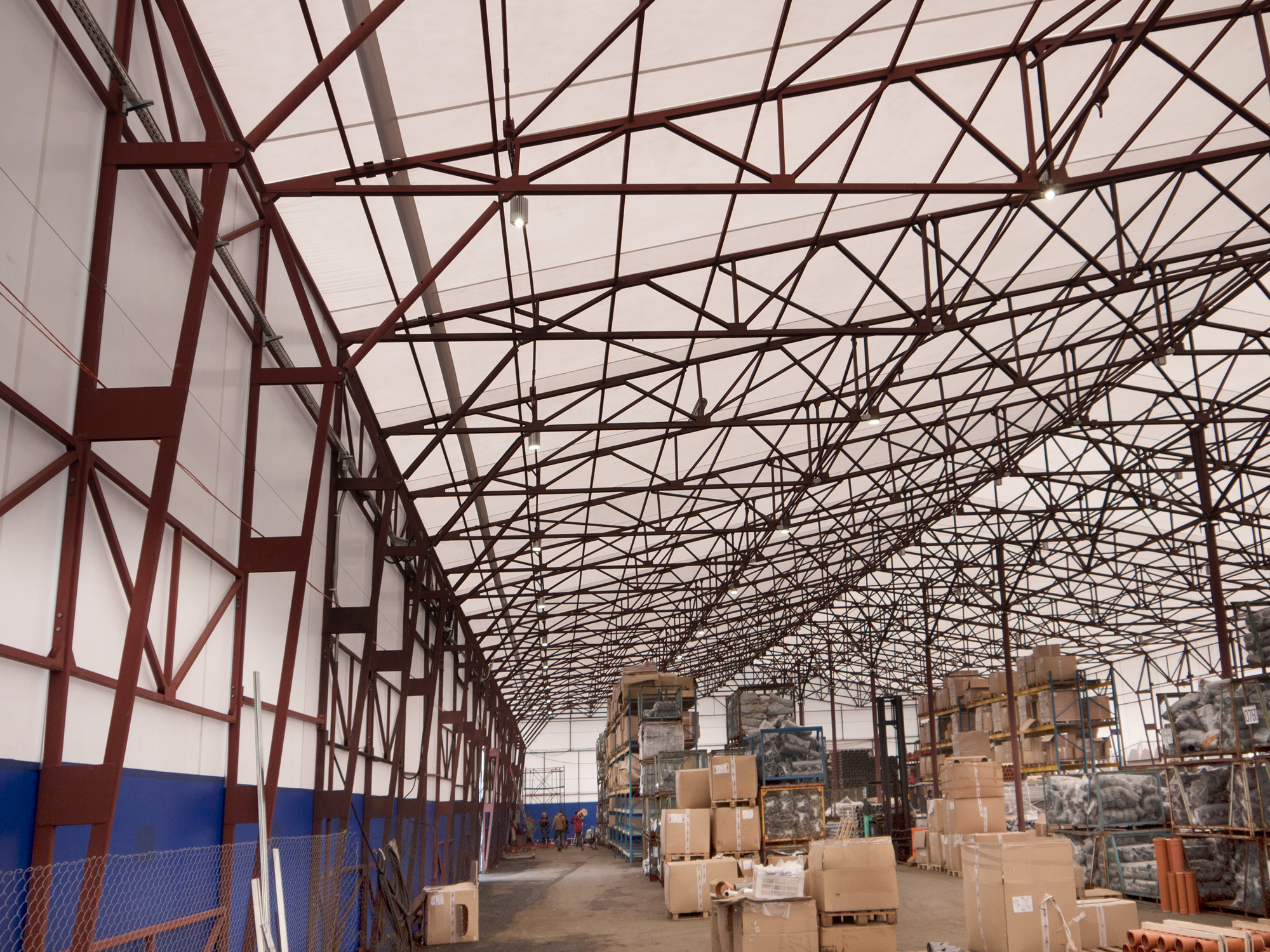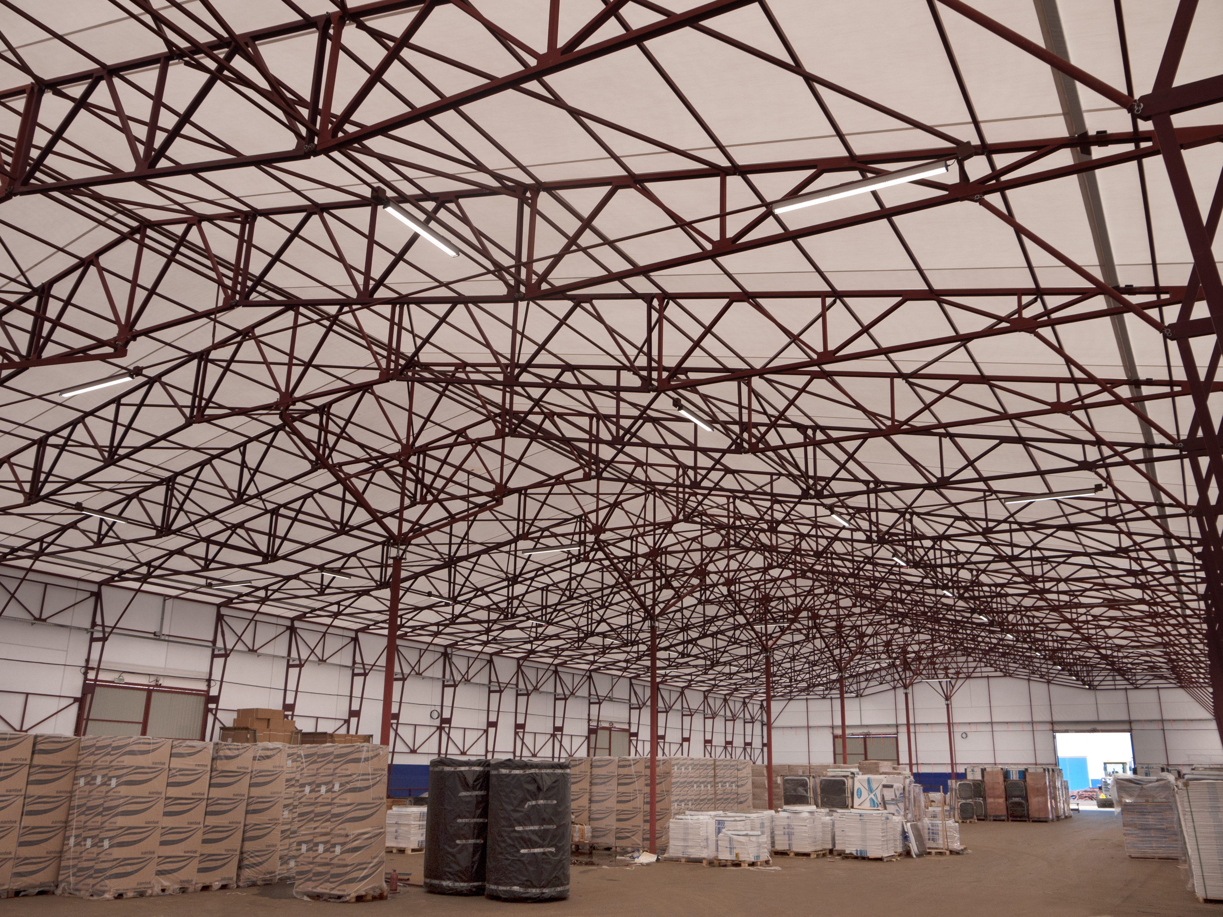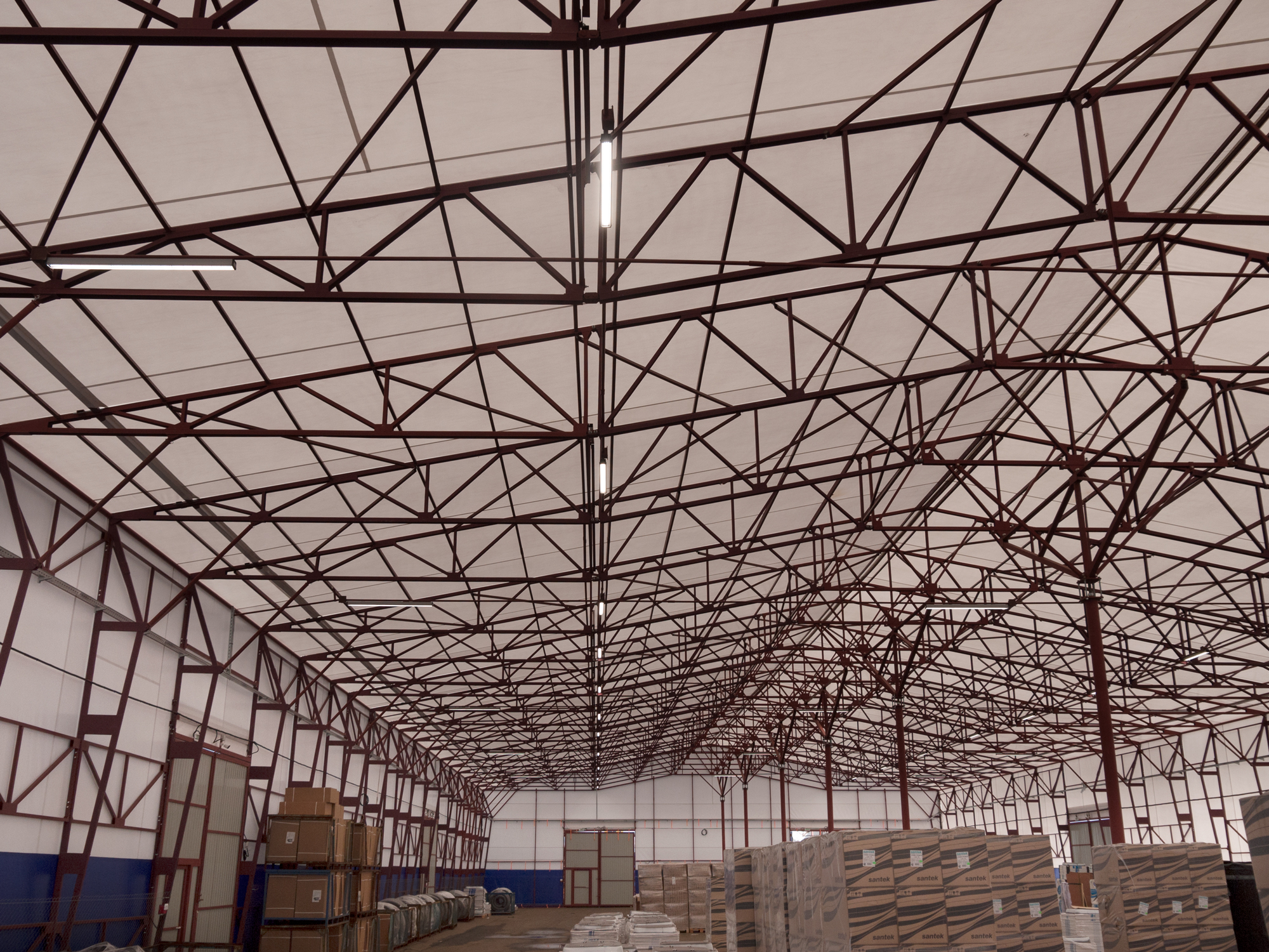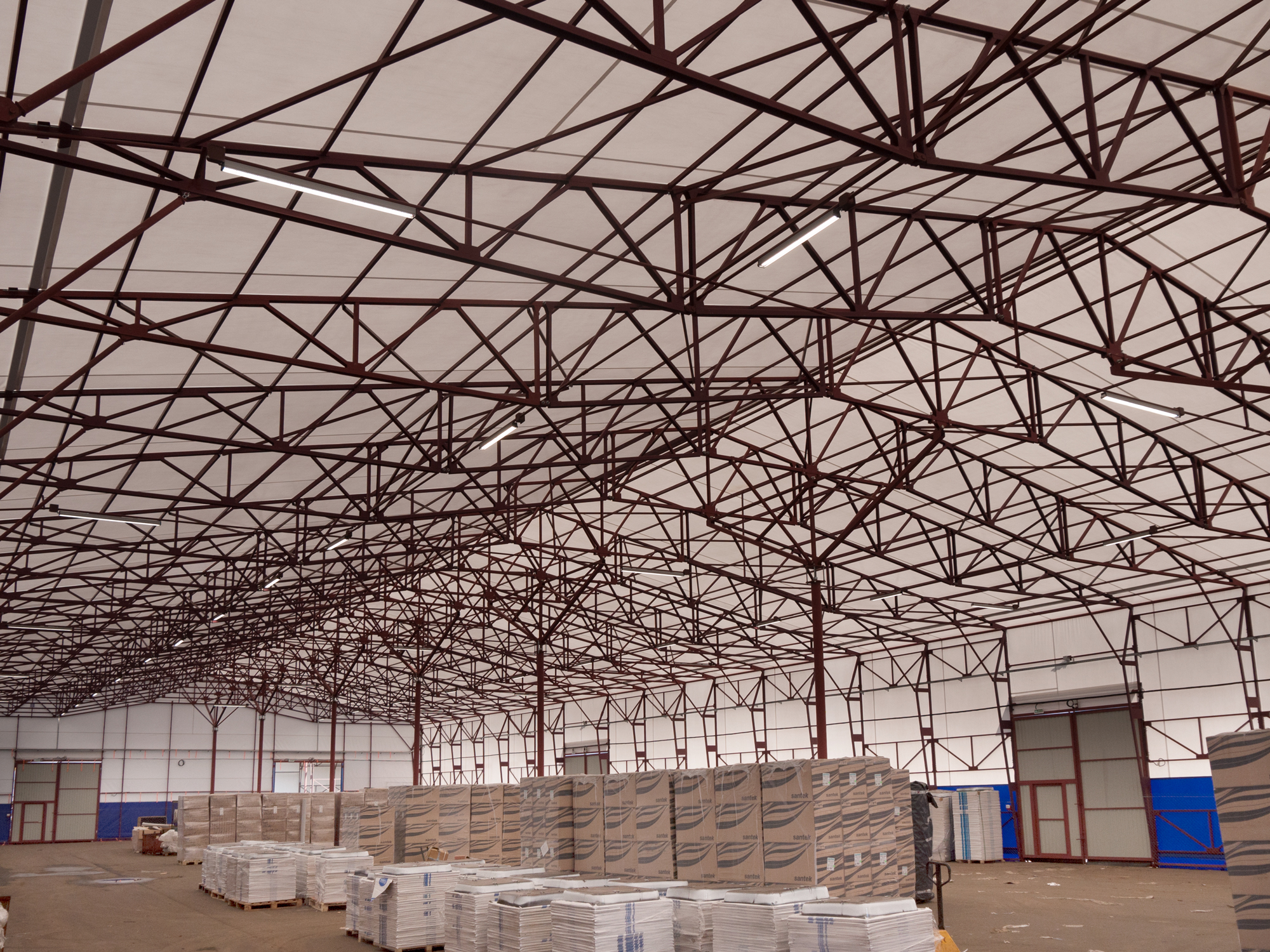 Предложенное осветительное решение: Т.к. часть помещений планировалось переоснащать под производство, установили светодиодные светильники ПромЛед Т-Линия v2.0-100 Оптик для более равномерной засветки. В складские помещения установили светодиодные купольные светильники ПромЛед Профи v2.0-100
