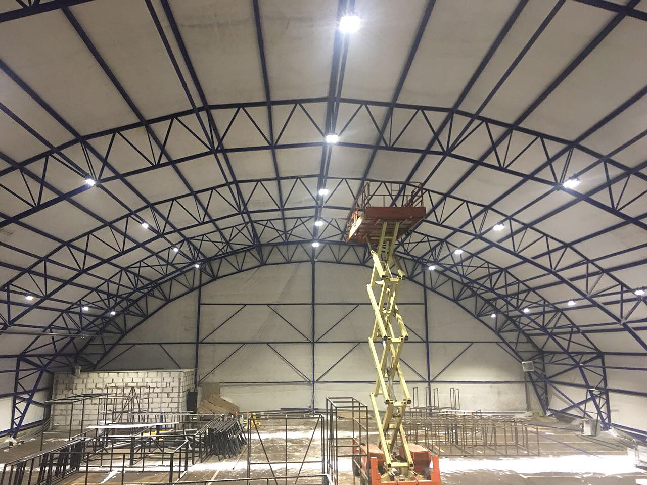 Предложенное осветительное решение: Для достижения максимально равномерной освещенности менеджер компании предложил 2 вида светильников: ПромЛед Прожектор v2.0-200 для монтажа в центральной части помещения и ПромЛед Прожектор v2.0-100 для монтажа по бокам помещения