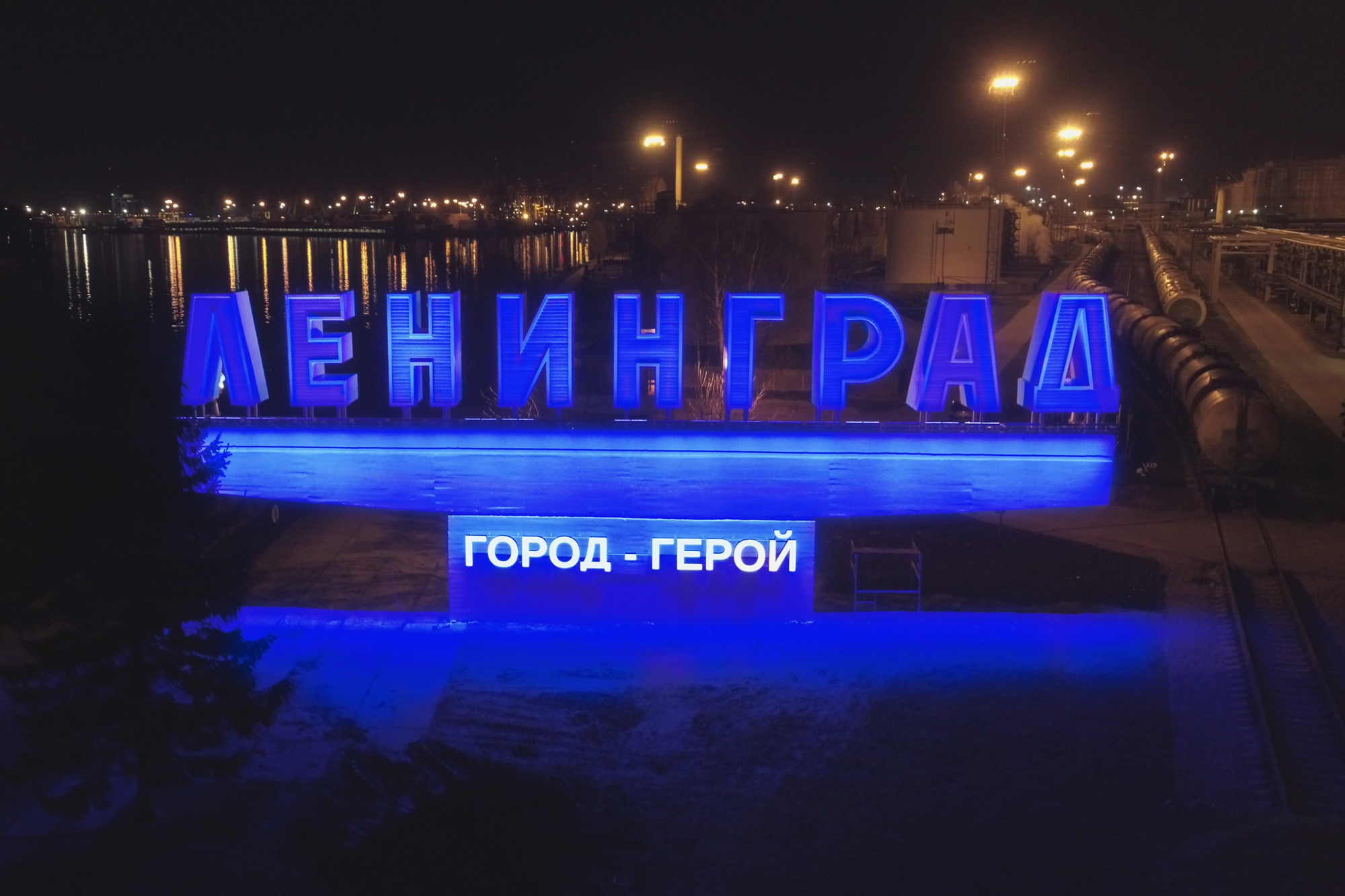 Предложенное осветительное решение: Для решения поставленной задачи был разработан эскиз подсветки отремонтированной стелы «Ленинград» на входе в морской порт Петербурга в районе Канонерского острова. Установили светодиодные светильники ПромЛед Барокко-40-1000 Оптик Синий с оптикой 10х65 для равномерной подсветки всей стелы.