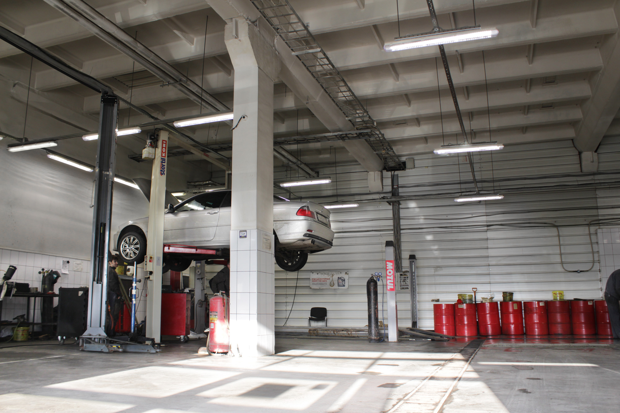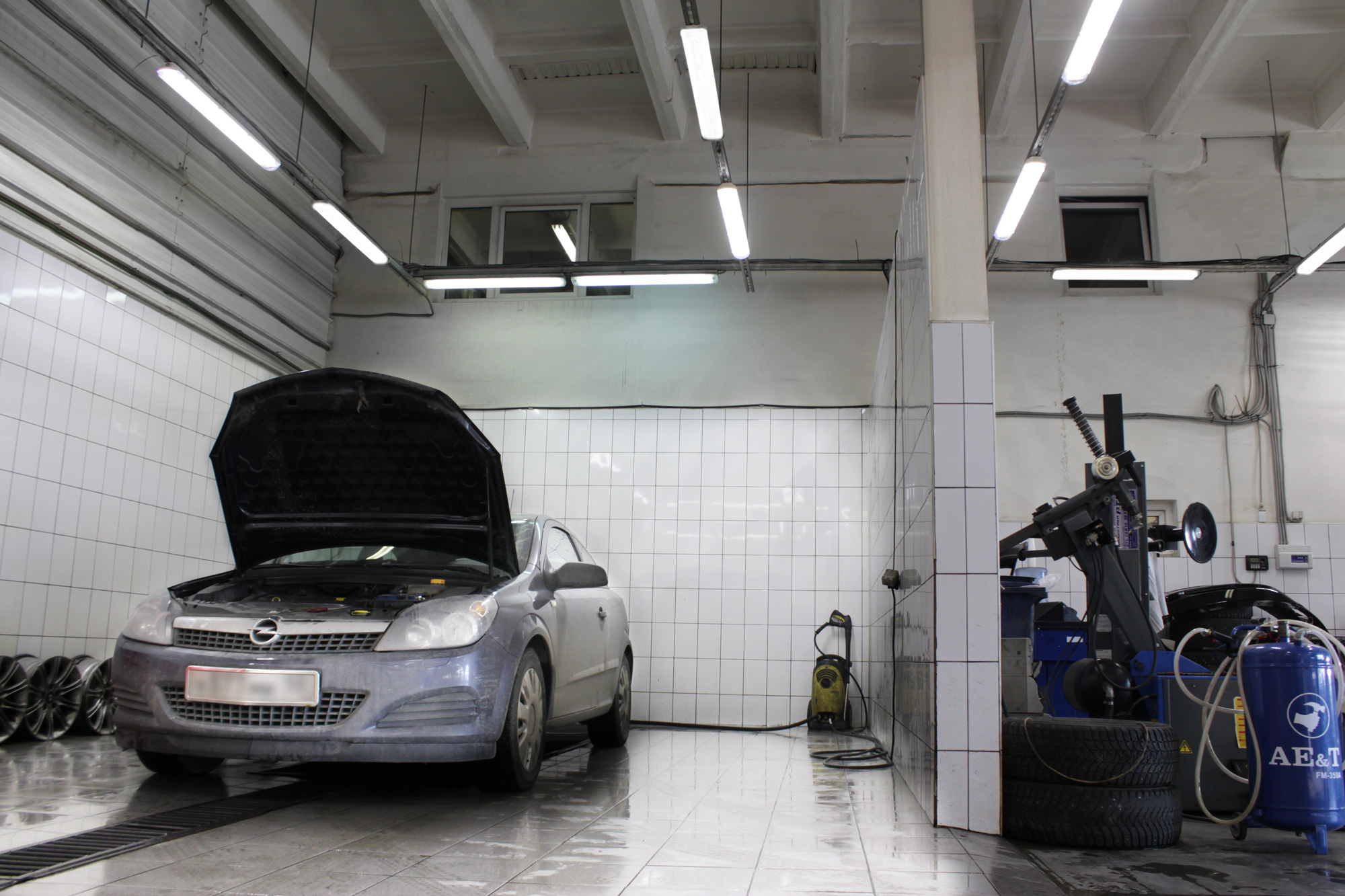 Руководство компании Автоцентр МТ (ремонт и сервисное обслуживание автомобилей) приняло решение постепенной замены старых светильников с люминесцентными лампами на новые светодиодные светильники марки Промлед. Учитывая требуемую освещенность (более 200лк), клиенту был предложен светильник модели ПромЛед Айсберг-60. Эта модель часто используется для освещения промышленных помещений с высотой потолков до 6 метров. В данном случае у клиента также не возникло никаких сложностей с монтажом, т.к. светильники по форме очень схожи со своим люминесцентным аналогом, что позволило использовать уже существующий крепеж. Отметим также, что в новых светильниках используется более качественный пластик, что в свою очередь решает проблему пожелтения рассеивателя (как это часто бывало в светильниках ЛПО 2х36).