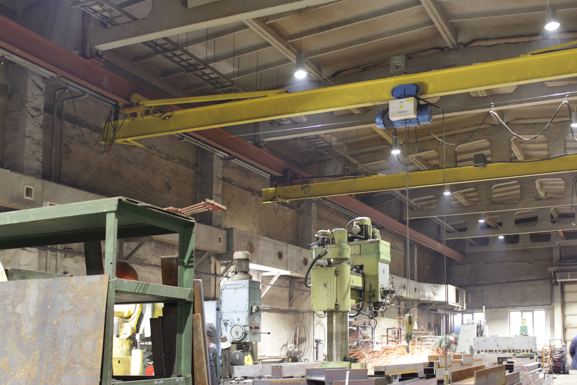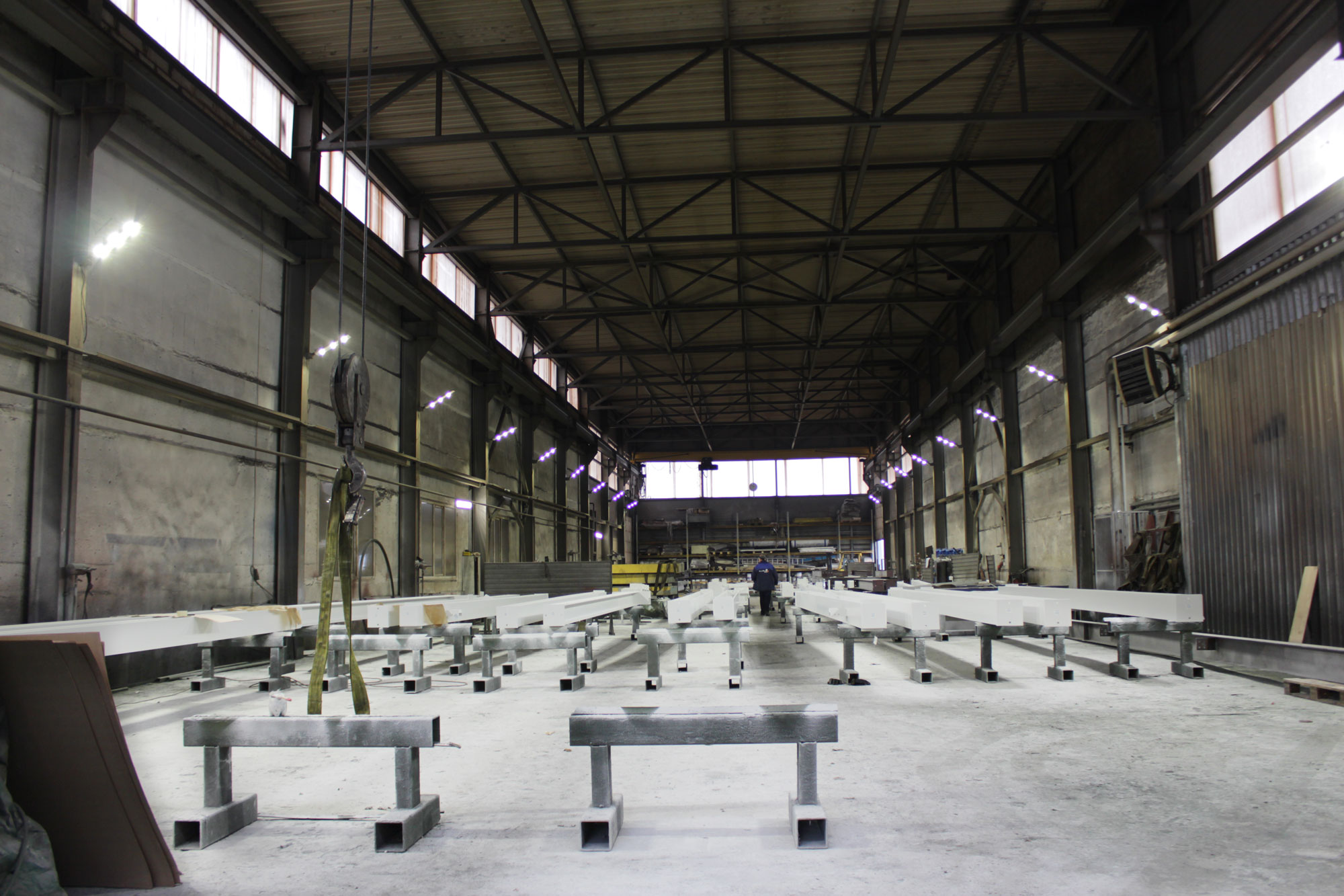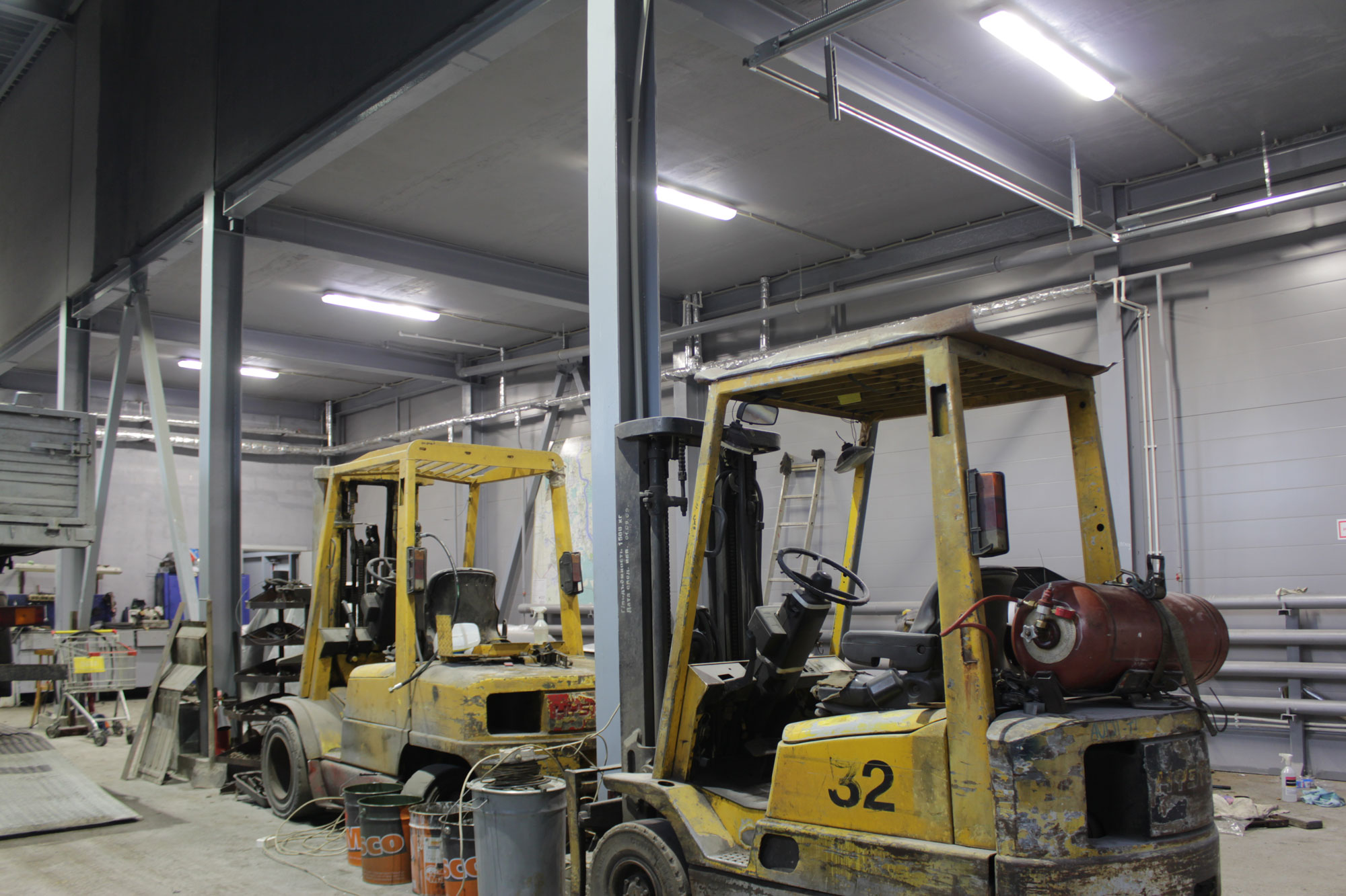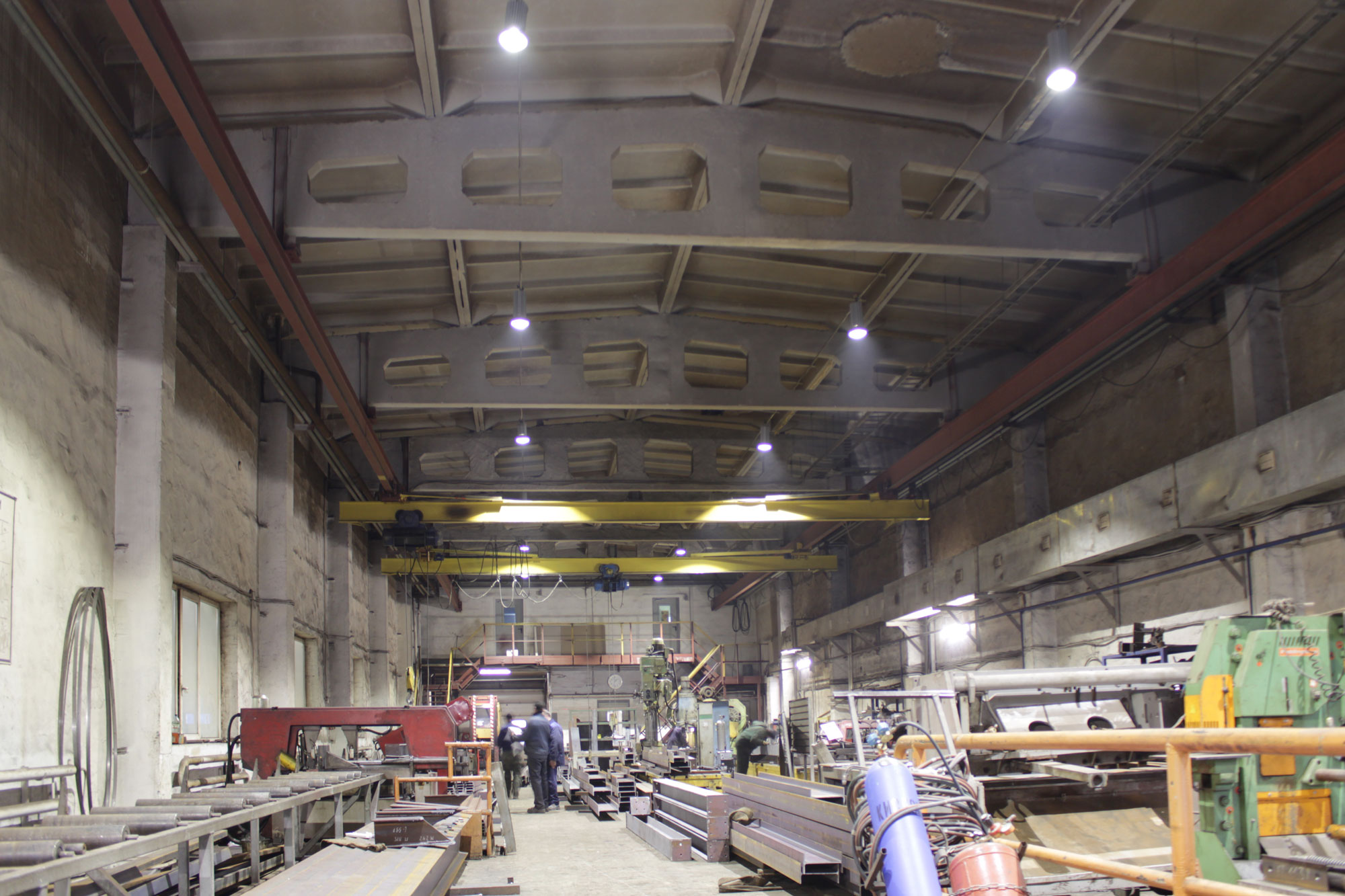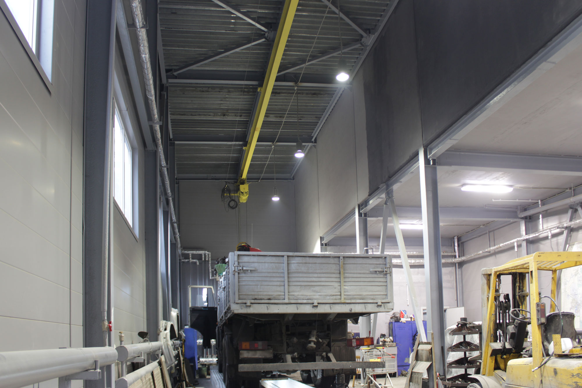 Предложенное осветительное решение: В промышленном цеху по периметру были установлены светильники типа РКУ с лампами ДРЛ 700. Мы предложили их заменить на светодиодные светильники ПромЛед Магистраль v2.0-150. В другом производственном помещении вместо купольных светильников с лампами ДРЛ 700 были установлены светильники ПромЛед Профи v2.0-150. В помещении гаражного типа вместо светильников ЛПО 4х36 и светильников с лампами ДРЛ 400 мы установили светильники ПромЛед Айсберг 60 и ПромЛед Профи v2.0-100