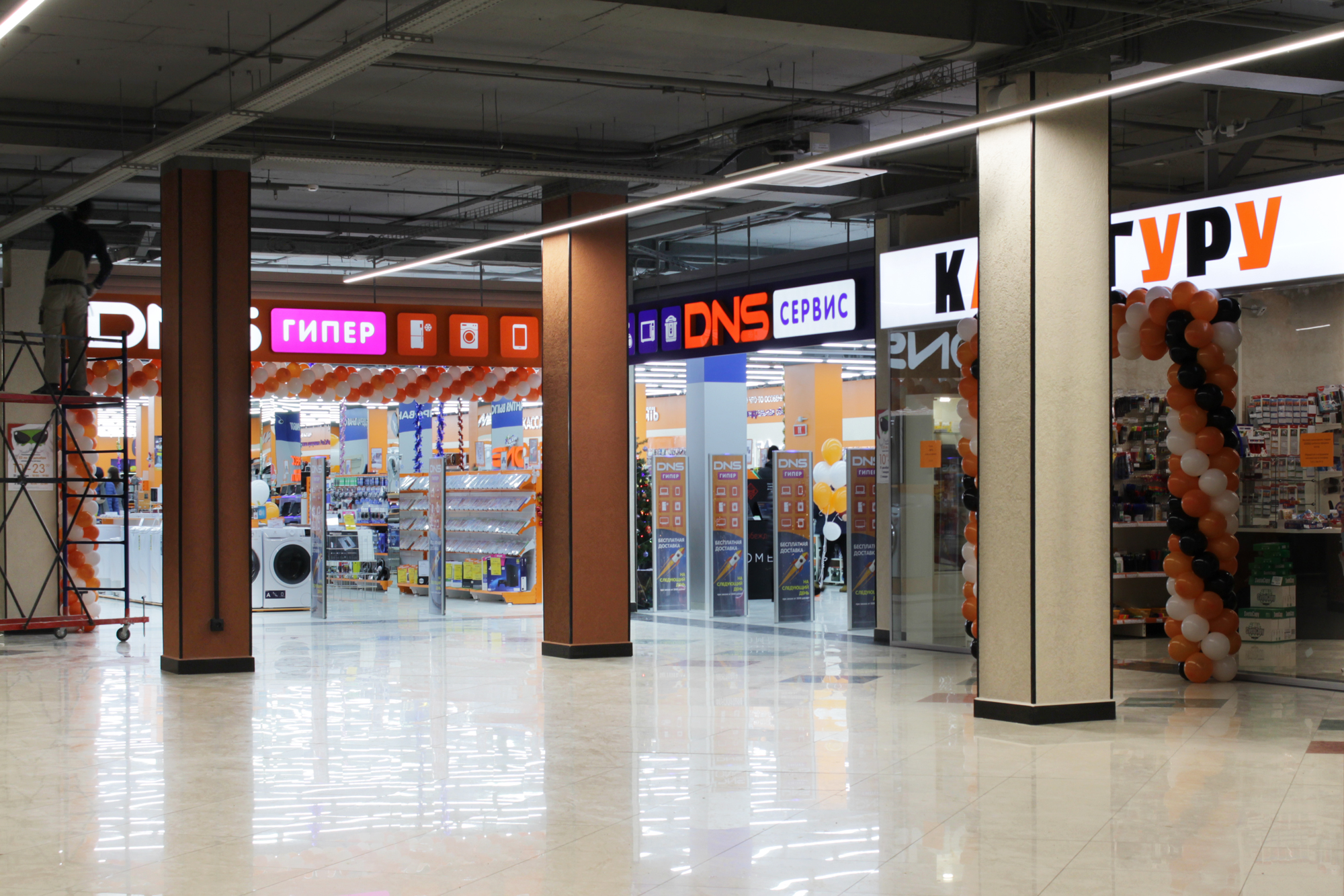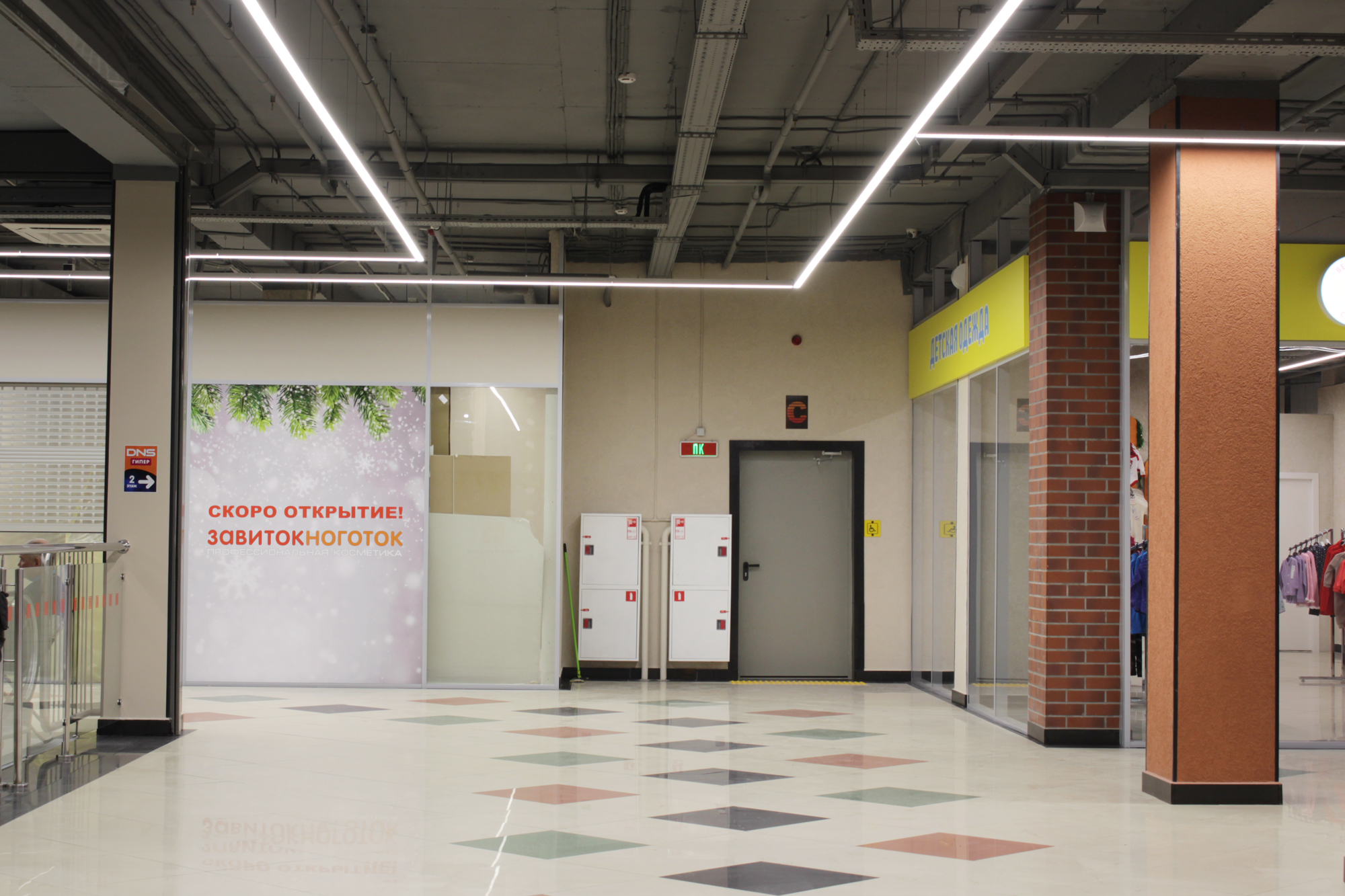 Поставленная задача: Осветить общую зону торгового центра, проходы между магазинами и коридоры линейными светодиодными светильниками