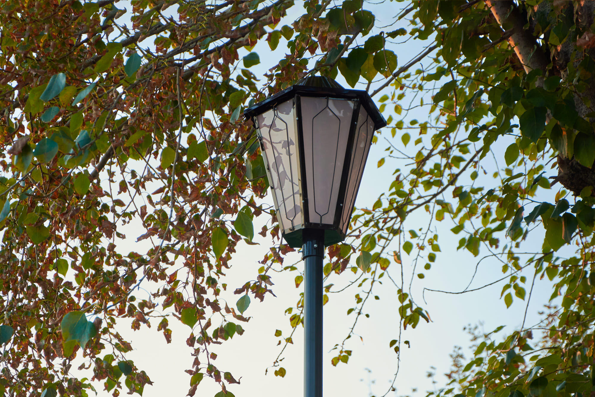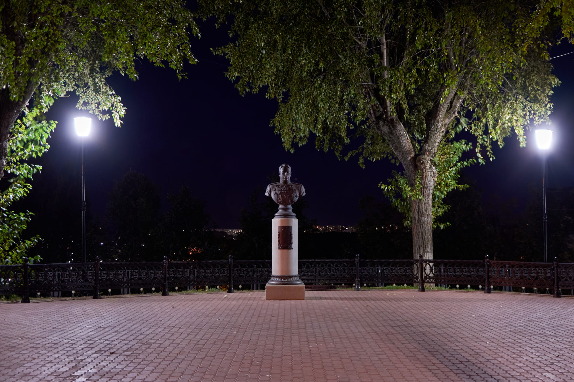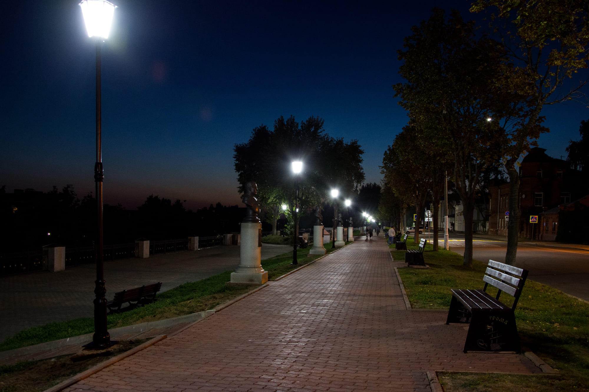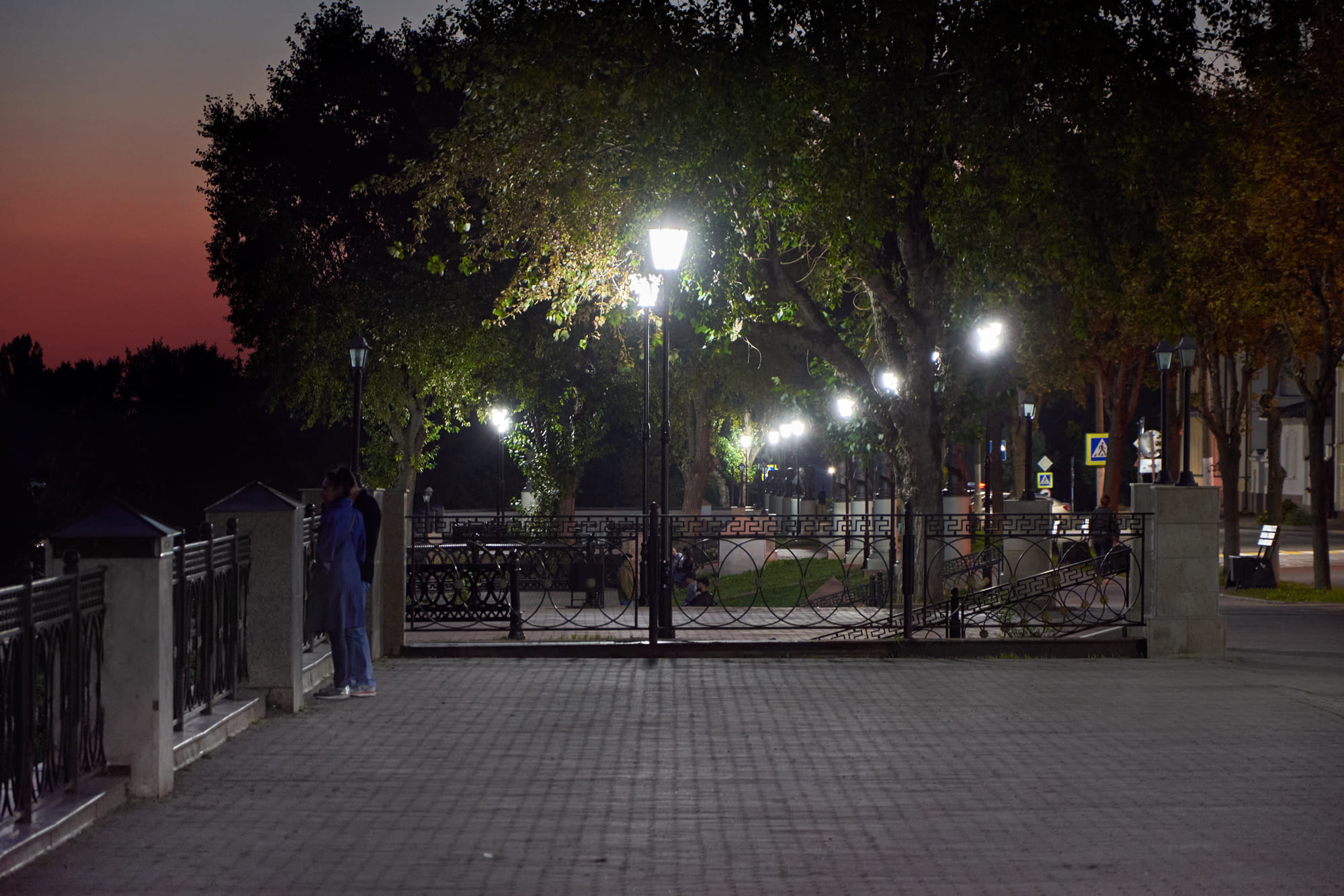 Декоративные парковые светильники создали равномерное неслепящее освещение и комфортную атмосферу для нахождения в парке в вечернее время.