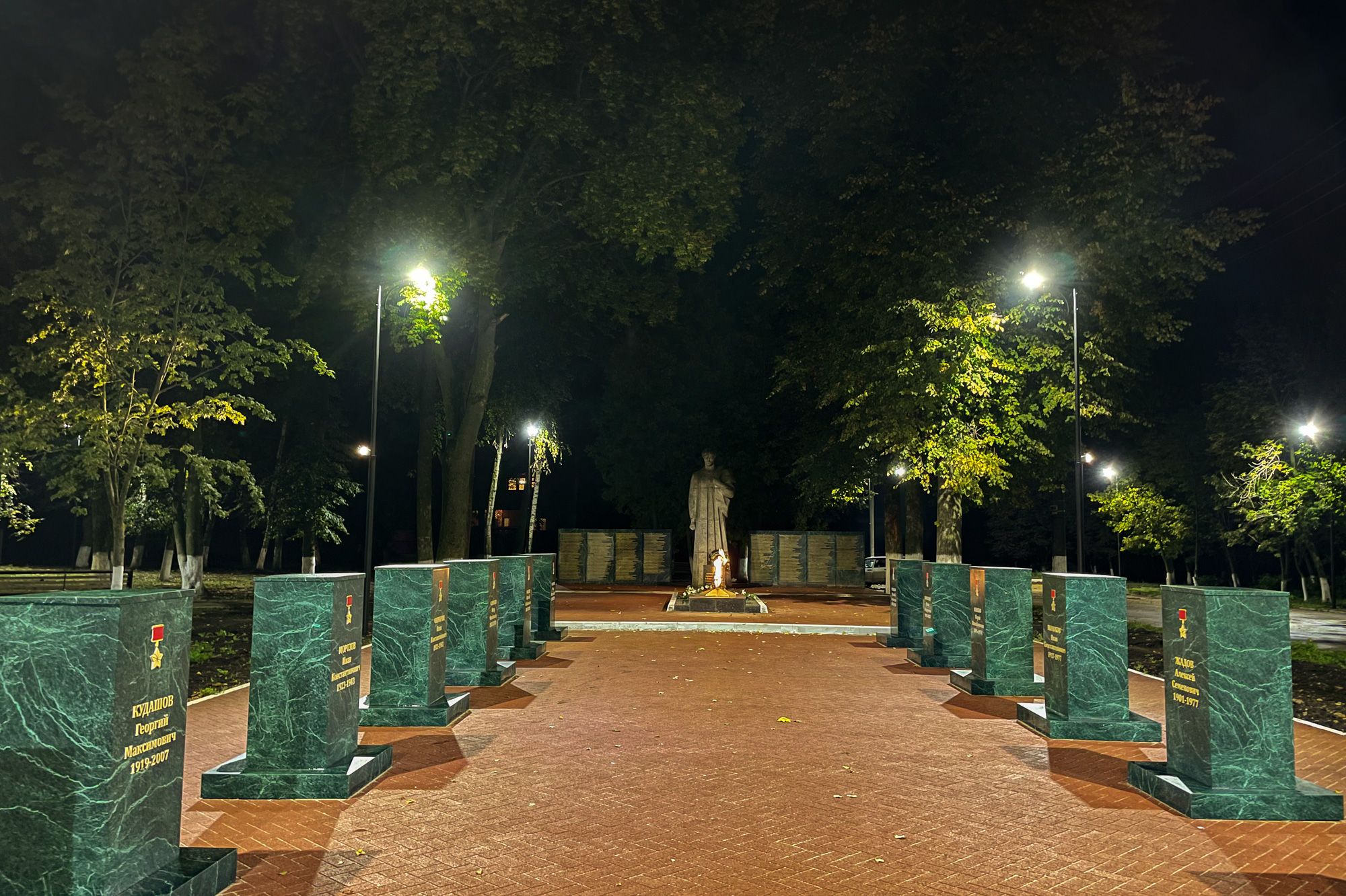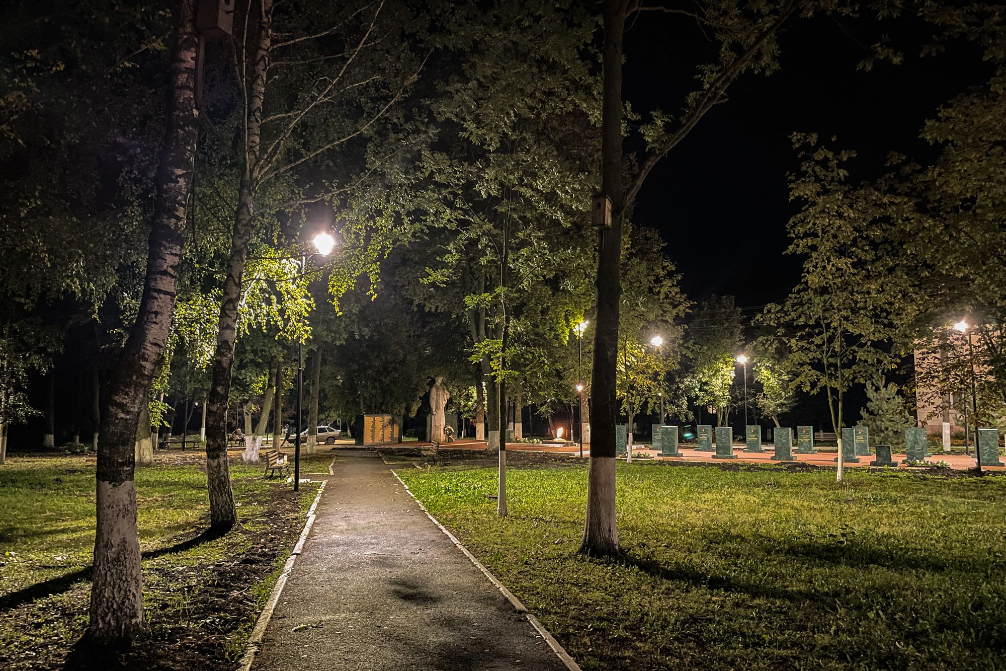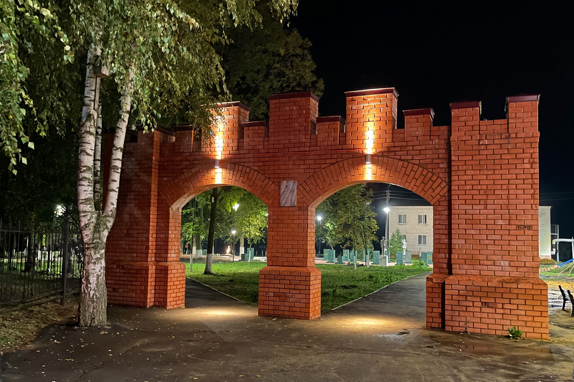 Поставленная задача: в рамках благоустройства парка осветить уличную территорию, выполнить архитектурную подсветку аркад на входах.