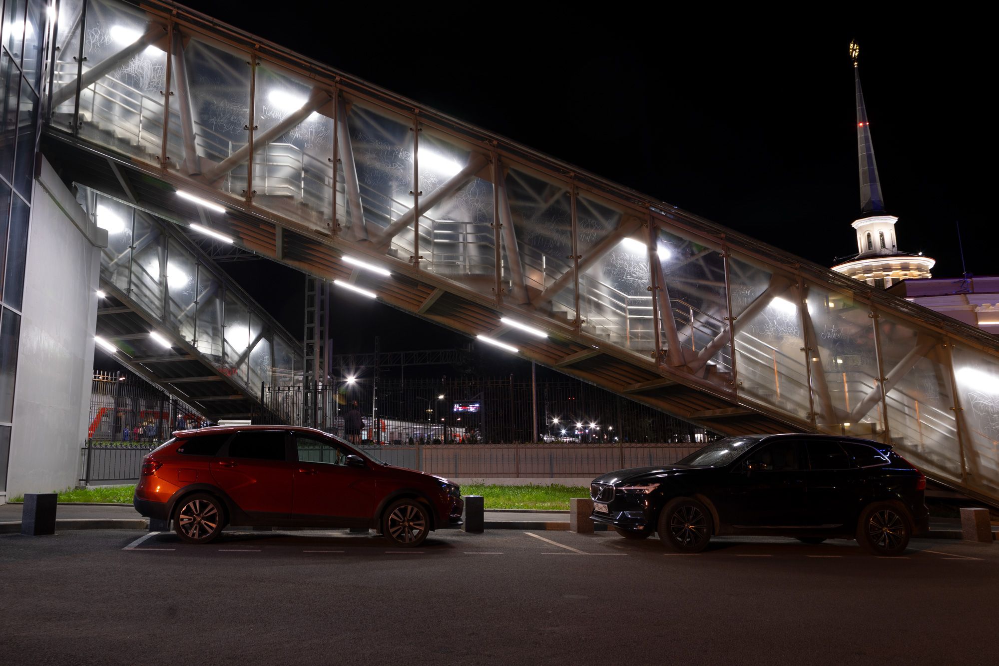 Поставленная задача: осветить пешеходный переход через железнодорожные пути новыми светодиодными светильниками.