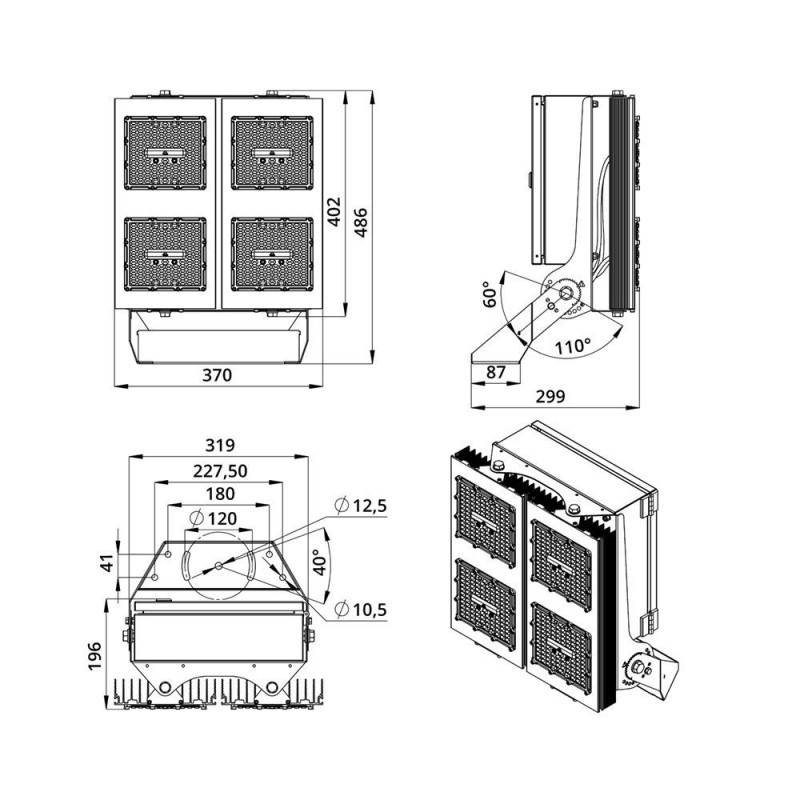 Также это исполнение имеет поворотные модули, которые можно ориентировать независимо друг от друга в разных направлениях. Количество модулей варьируется в зависимости от мощности светильника.
