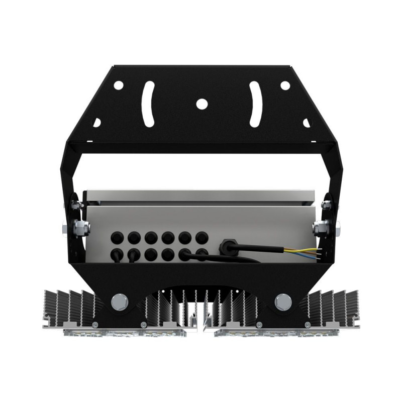 В комплекте идёт кронштейн, который позволяет регулировать угол наклона светильников. Специальные зубцы на кронштейнах дополнительно облегчают регулировку положения прожектора.