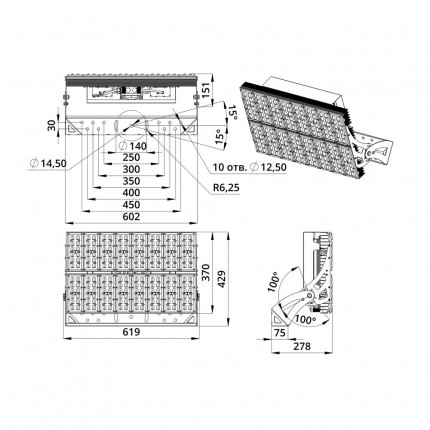 | Тип кривой силы света | Асимметричная |