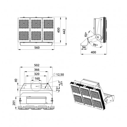 Также это исполнение имеет поворотные модули, которые можно ориентировать независимо друг от друга в разных направлениях. Количество модулей варьируется в зависимости от мощности светильника.