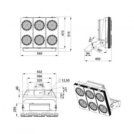 В комплекте идёт кронштейн, который позволяет регулировать угол наклона светильников. Специальные зубцы на кронштейнах дополнительно облегчают регулировку положения прожектора.