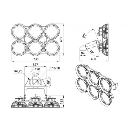 Прожекторы имеют малые габаритную высоту и вес, что снижает ветровую и весовую нагрузку на опорные конструкции.
