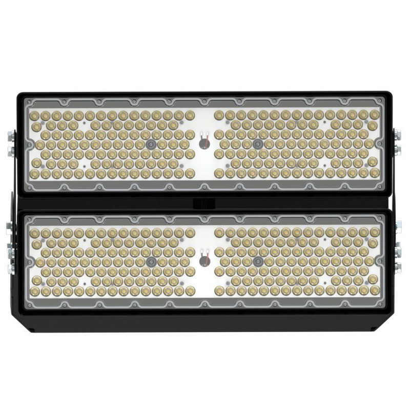 За счет конструкции радиаторной части прожекторы мощностью 400 и 500 Вт на один модуль имеют оптимальное сочетание массы, габаритов и цены за люмен, что особенно важно при выборе светильников для установки на высокомачтовые опоры.